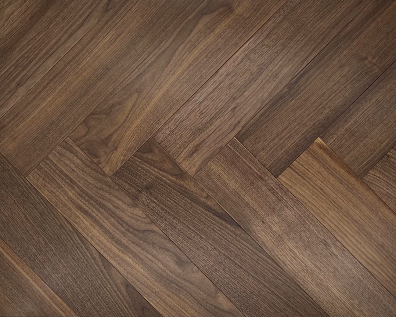 Engineered American walnut herringbone parquet 90º is available in the following width: 125 mm, length: 600 mm, with an overall thickness of 14 mm ( 3 mm top walnut layer ). Rustic Grade. Suitable for underfloor heating.