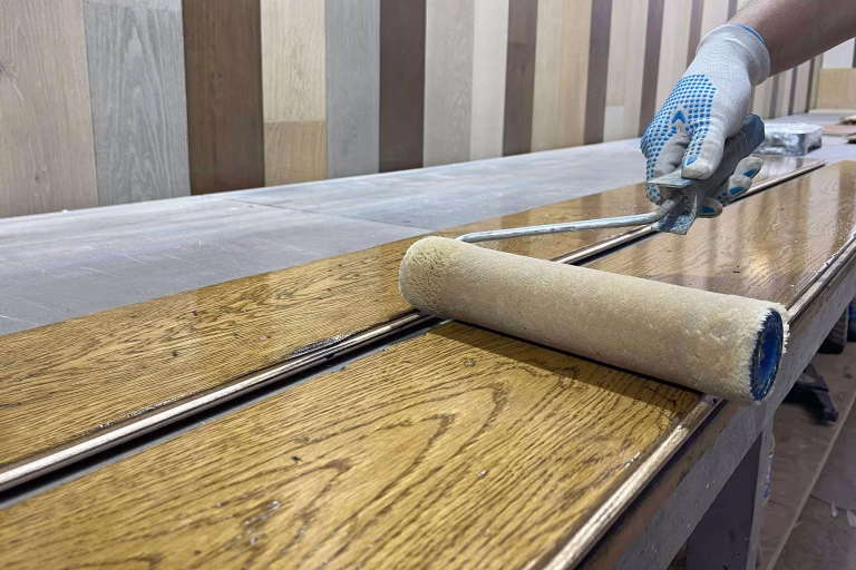 Unlike mass-produced UV-oiled floors, which often require complete re-sanding for minor repairs, our durable, deep-penetration finish allows effortless refreshing and spot-repairs with no disruption.