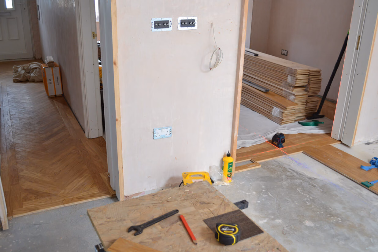So with this in mind it was discussed at conception to go for a traditional Oak herringbone parquet in the front of the house leading you to the new extension where it would run seamless into wide oak planks.