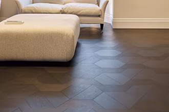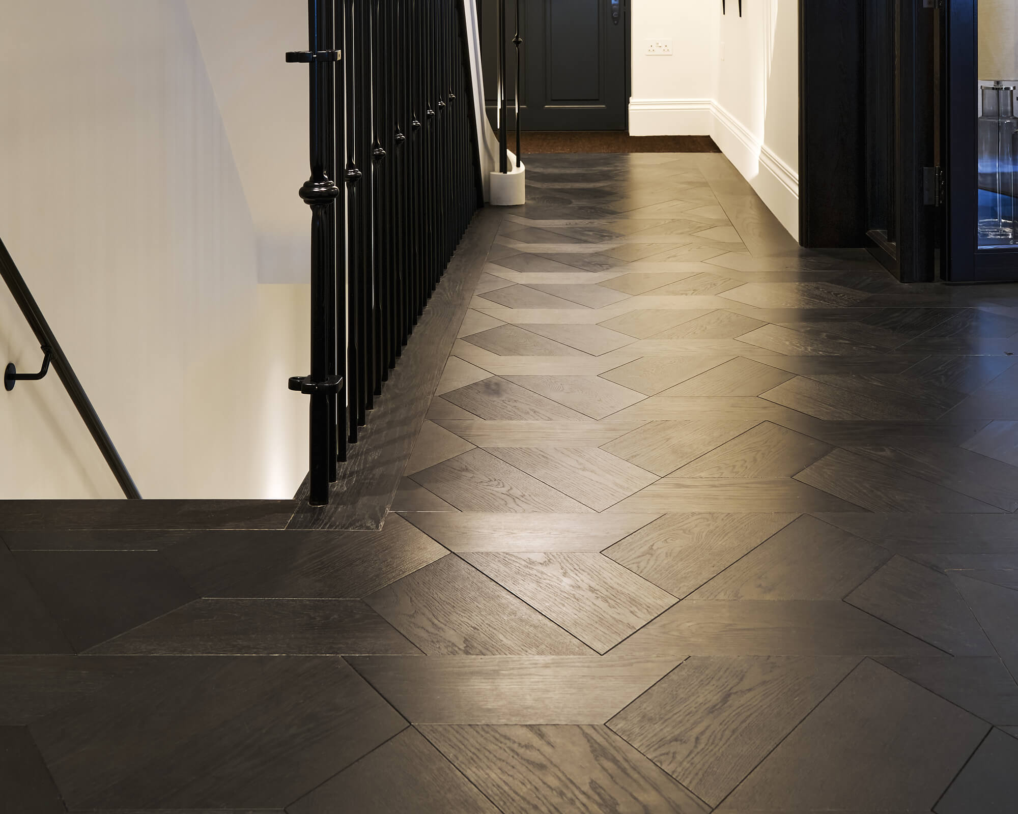 Completed in August 2025, this project delivered a cohesive timber flooring scheme using pewter charred prime grade oak across key living and circulation spaces. The specification combined planks, Triangle Weave Versailles panels and herringbone to create a consistent look while allowing each room to retain its own character.