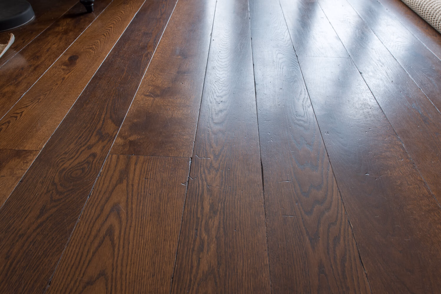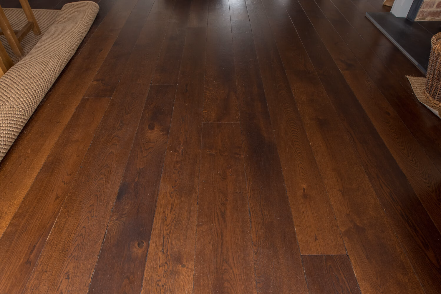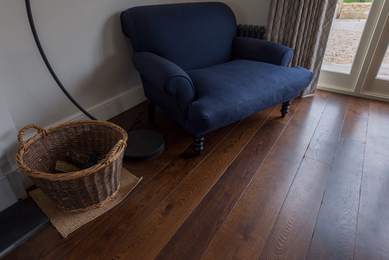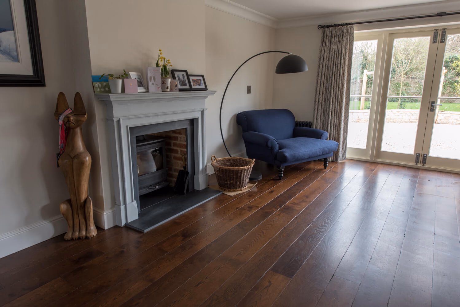 Idyllic Oxfordshire countryside home showcasing beautifully hand distressed planks in 180mm and 220mm wide random mixed widths, bringing character in abundance to this quaint country style Kitchen.