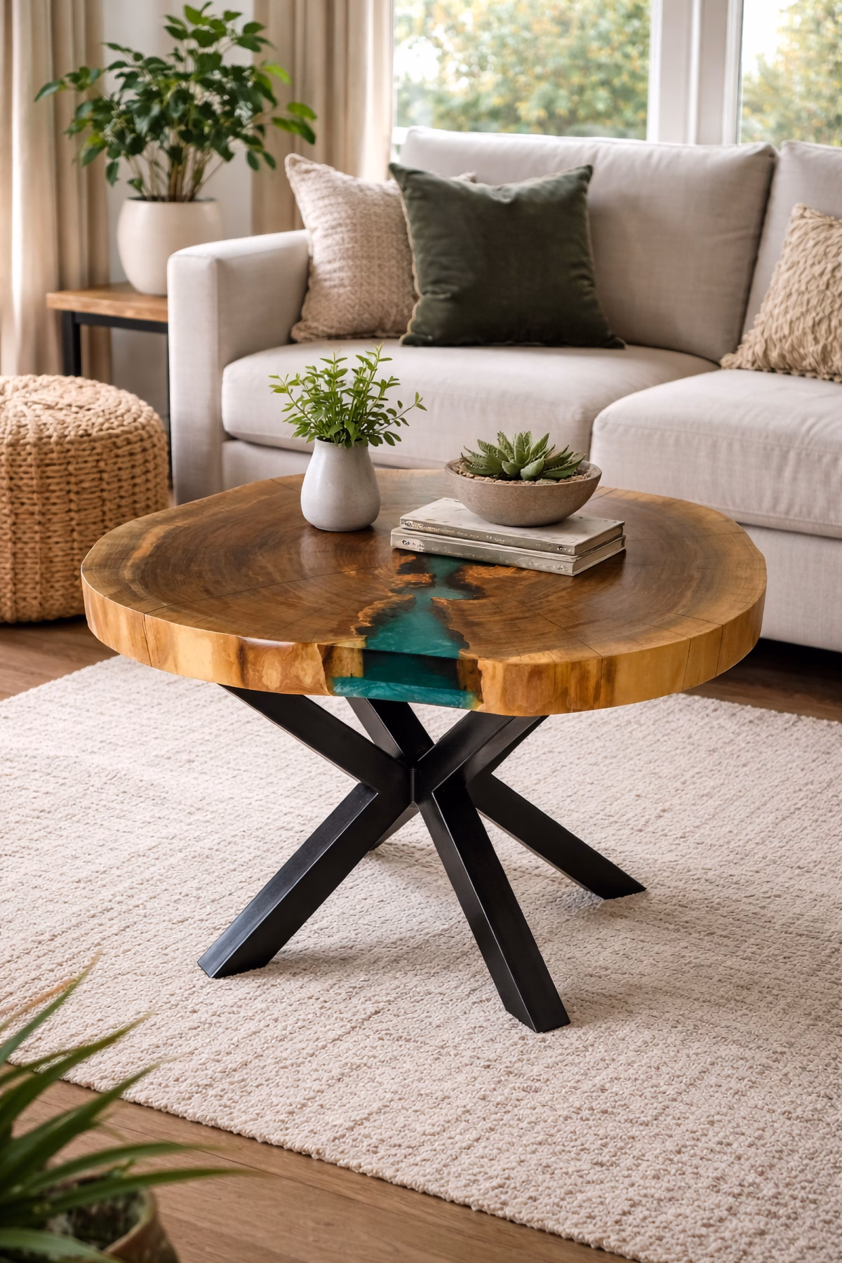 Handcrafted from Oak with a Natural Oil finish. Each table is one of a kind, made from carefully selected slabs. The natural grain and character of the wood makes every piece unique.
