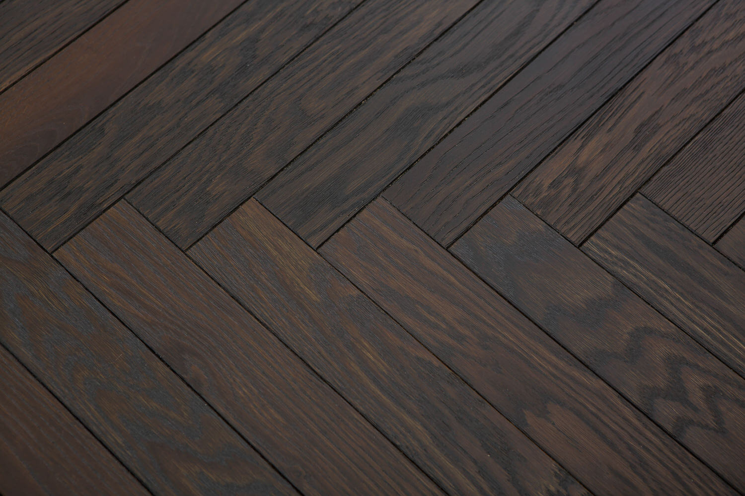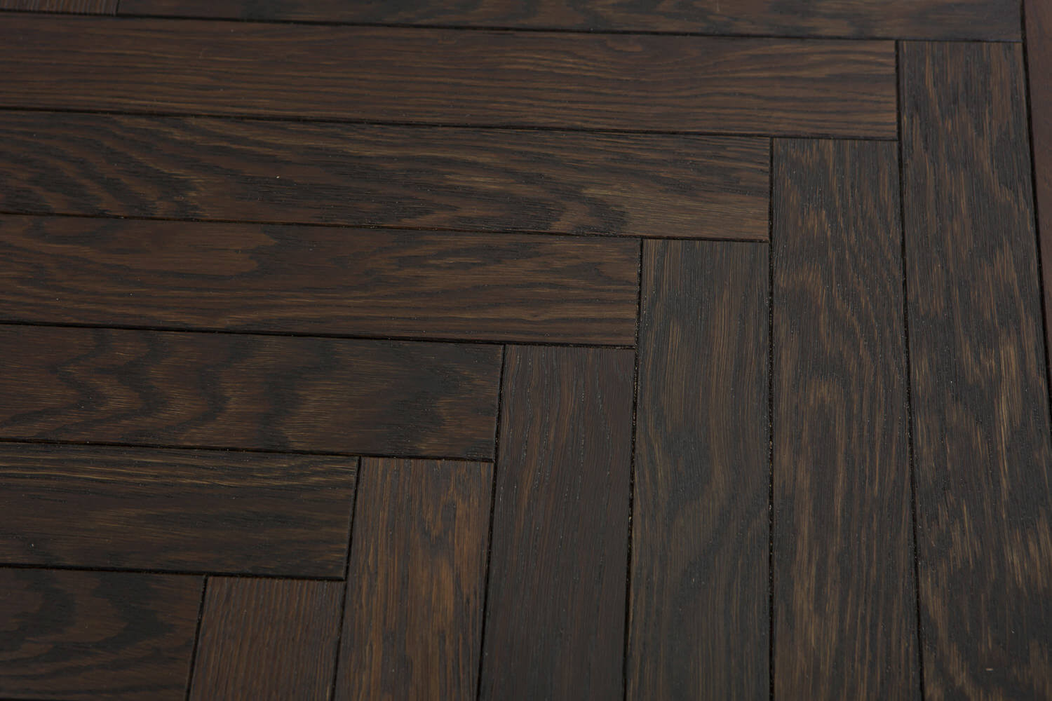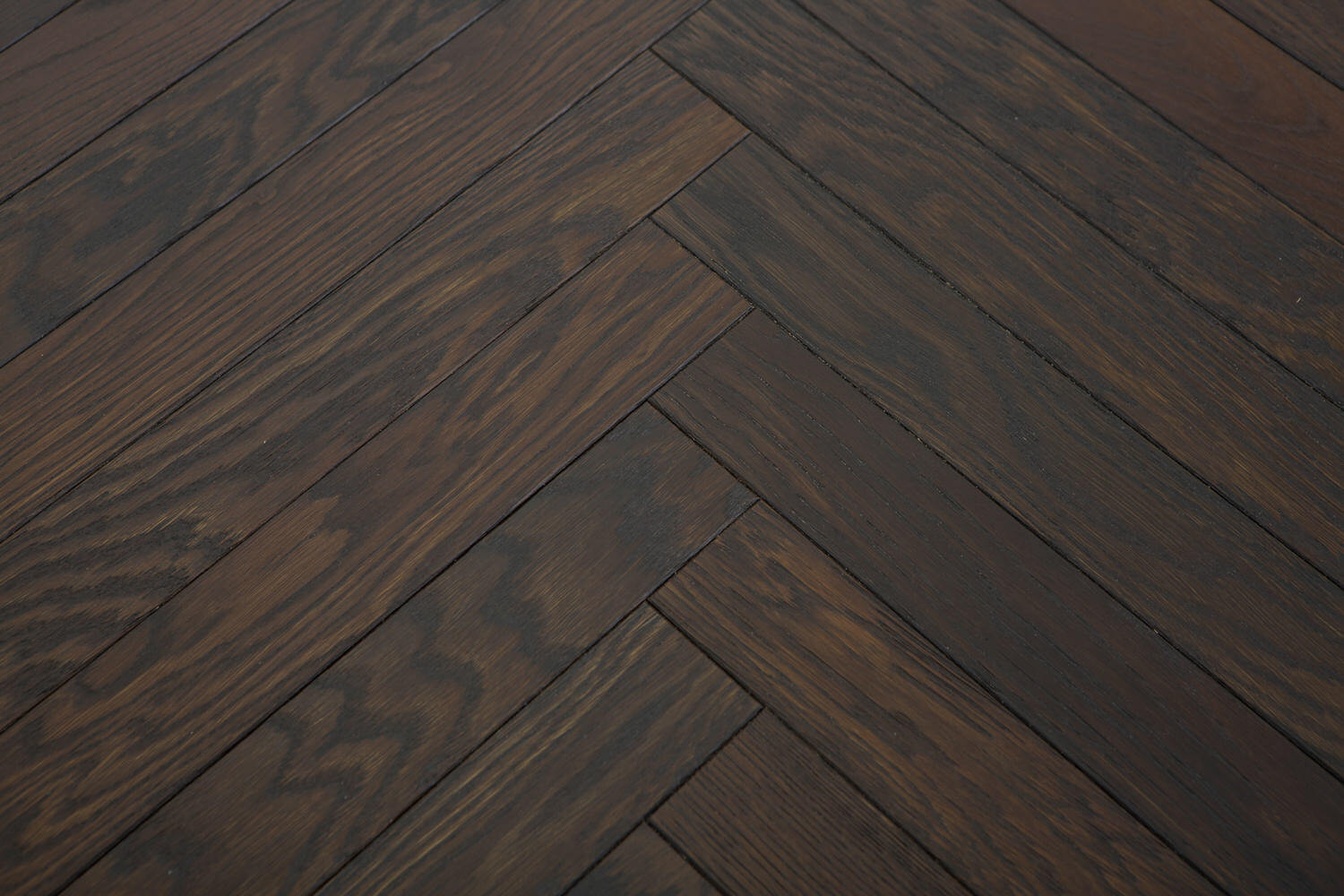 Engineered Oak herringbone 90º style, made from European Oak (Quercus petraea ) and available in the following width(s): 70/90/100/120 mm, following length(s): 350/400/500/600 mm with overall thickness 15 mm ( 4 mm top oak layer ) / 20 mm ( 6 mm top oak layer ) options and following grade(s): Prime Nature and Character. The base layer is made from WBP European Birch ( Betula Pendula ) cross layer plywood. Suitable for underfloor heating