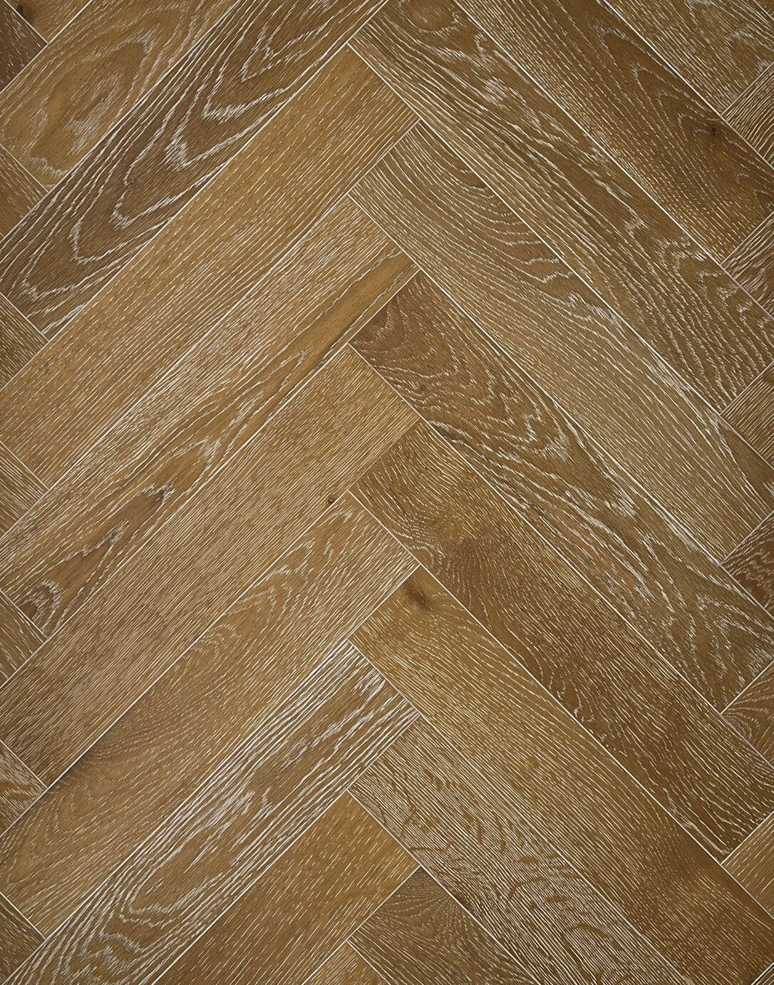 Engineered Oak herringbone parquet 90º is available in the following width: 90 mm, length: 450 mm, with an overall thickness of 14 mm ( 3 mm top oak layer ). Rustic Grade (ABCD). Suitable for underfloor heating.