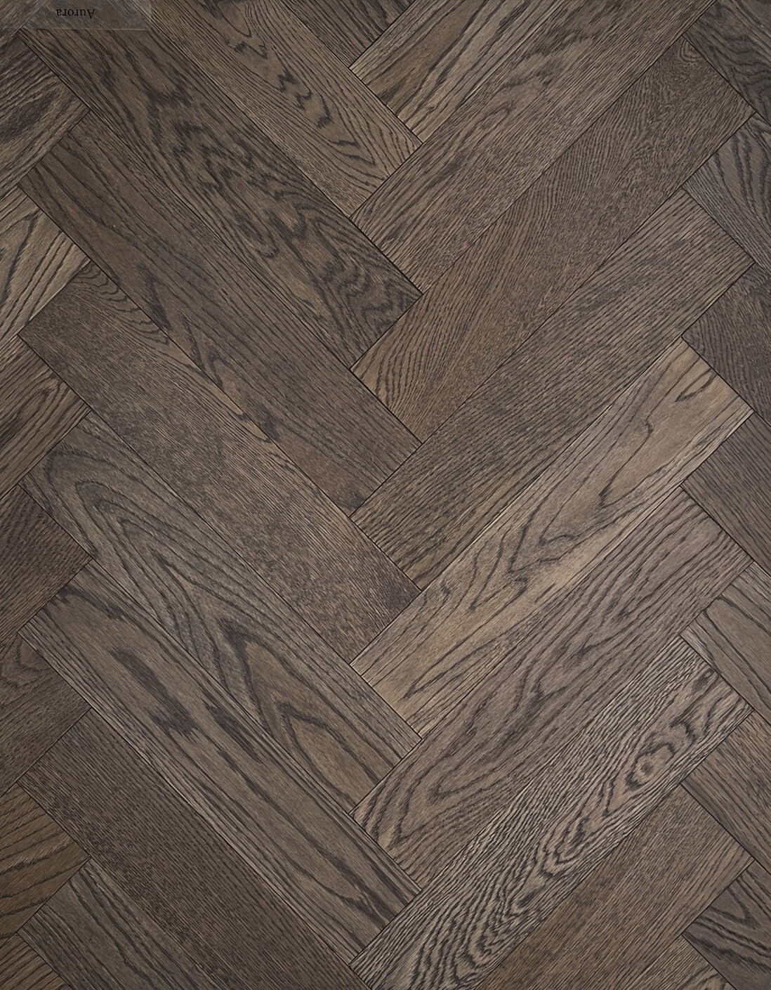 Engineered Oak herringbone parquet 90º is available in the following width: 90 mm, length: 400 mm, with an overall thickness of 15 mm ( 3 mm top oak layer ). Rustic Grade. Suitable for underfloor heating.