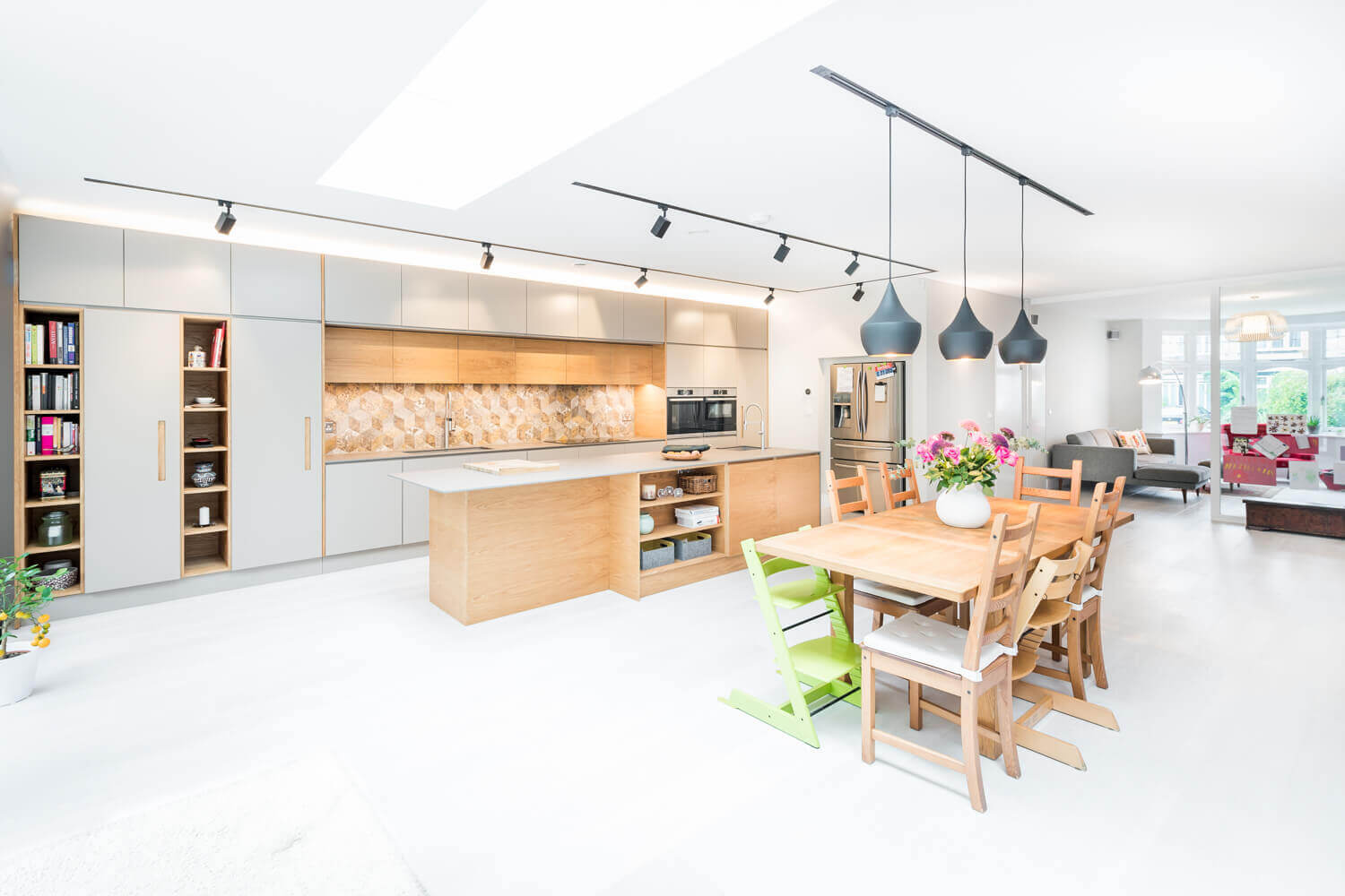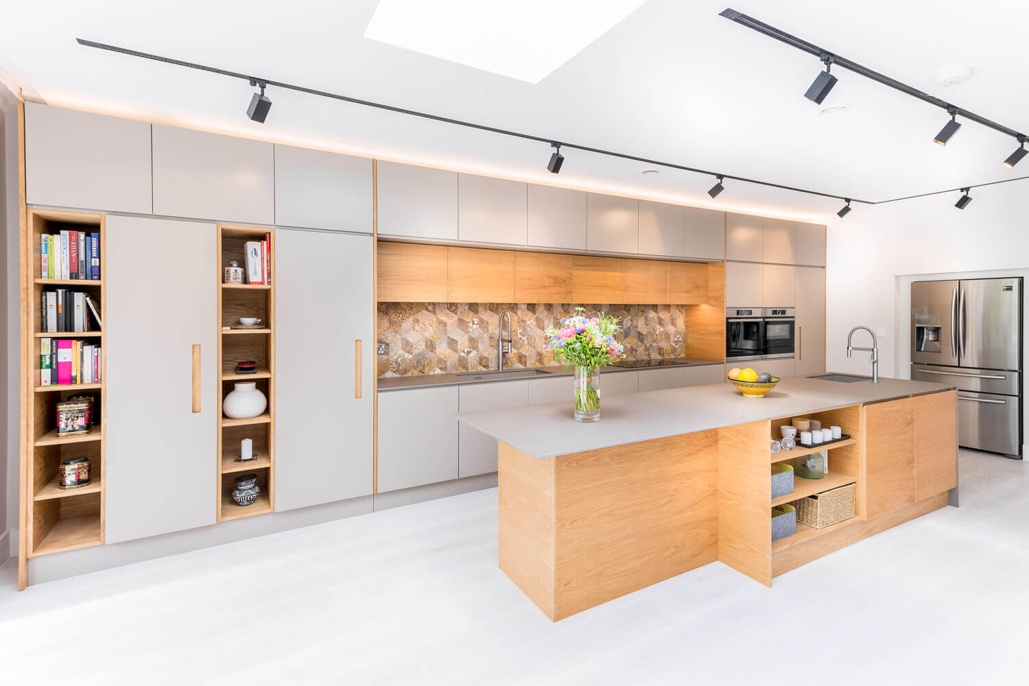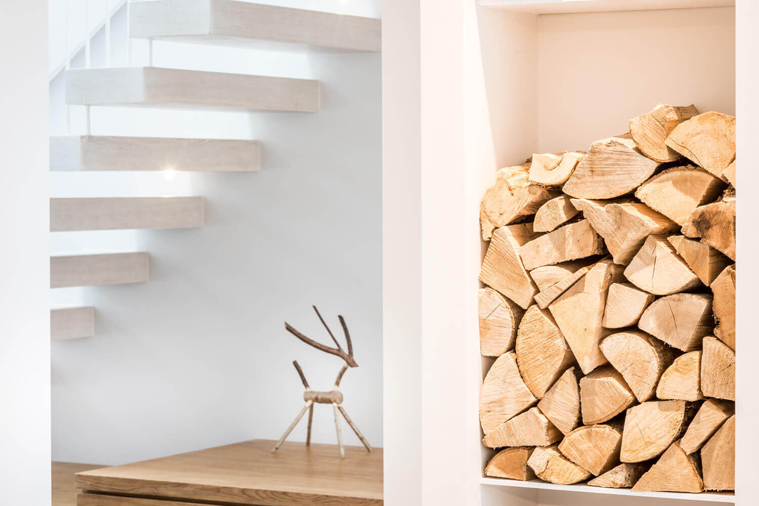 Lime Washed Engineered Oak Prime Grade – 21 mm x 240 mm – Luxury modern design project. This project showcases some of our finest bespoke staircases. Firstly a White Cantilever Staircase with wall anchored floating treads and White Balustrade, create a high- end contemporary finish. The second is made using Prime Grade Lime Washed Engineered Timber for the Seamless Treads and Risers.