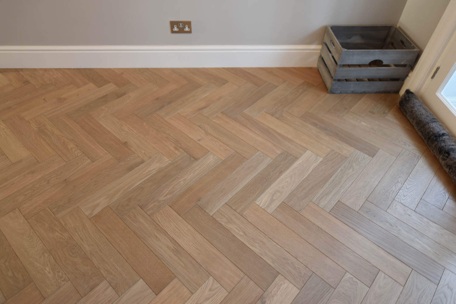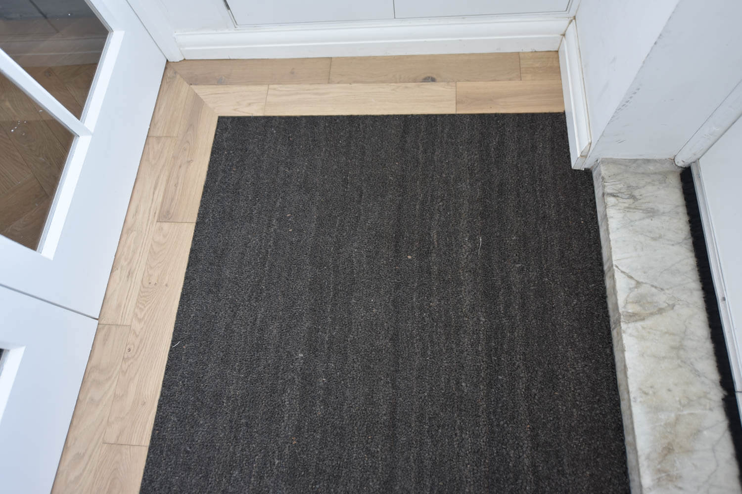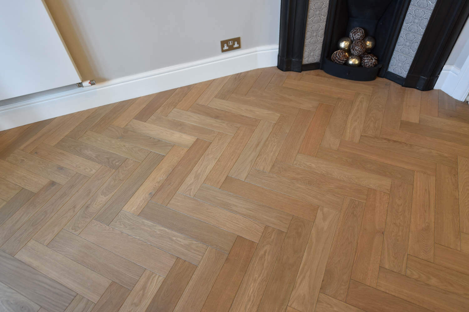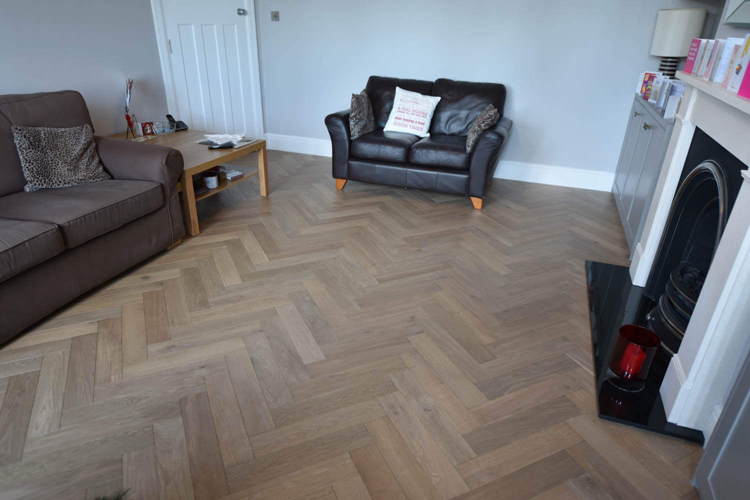 The cosy living room is beautifully decorated with a Christmas tree that adds an welcoming holiday feel to the space. The lovely herringbone oak flooring brings a touch to the room, with its tones and intricate design that complements the festive decorations perfectly. Soft lighting and selected furnishings enhance the charm of the room. Create an ideal atmosphere, for hosting intimate holiday get togethers.