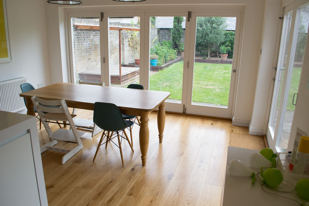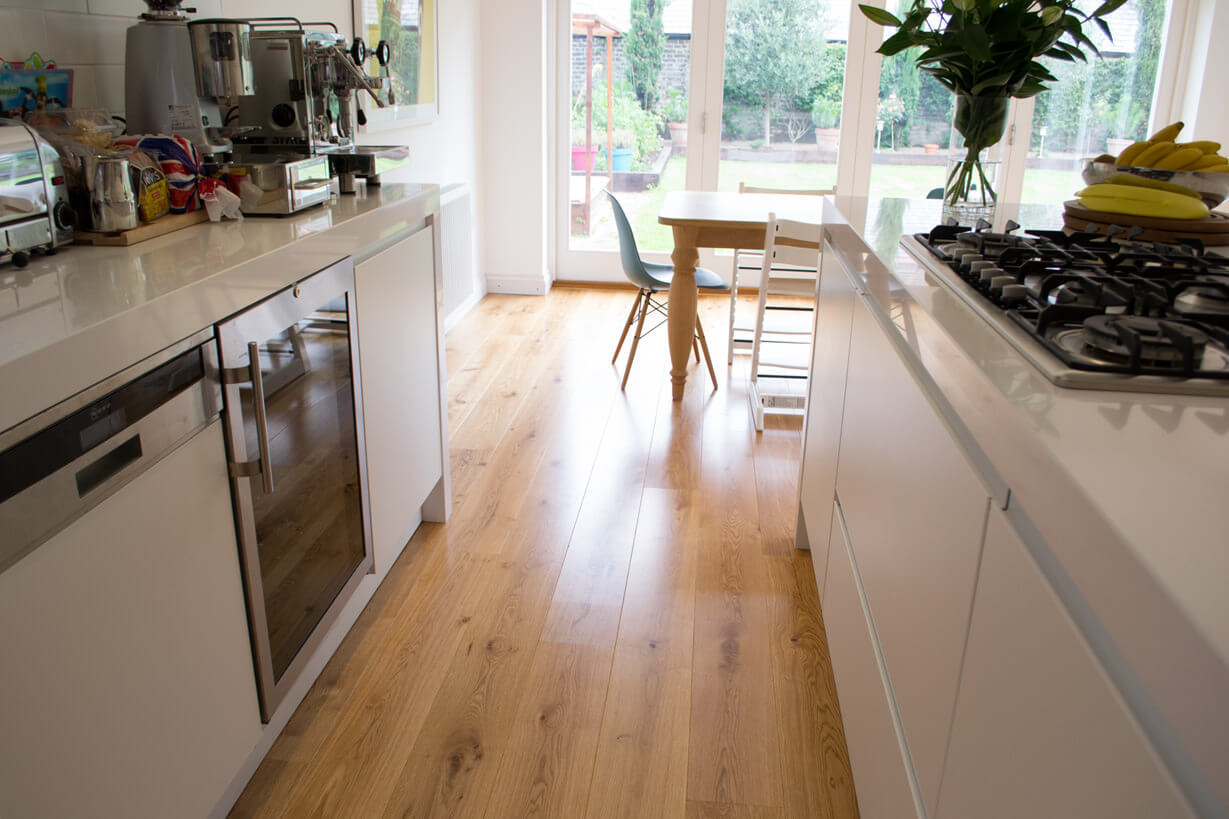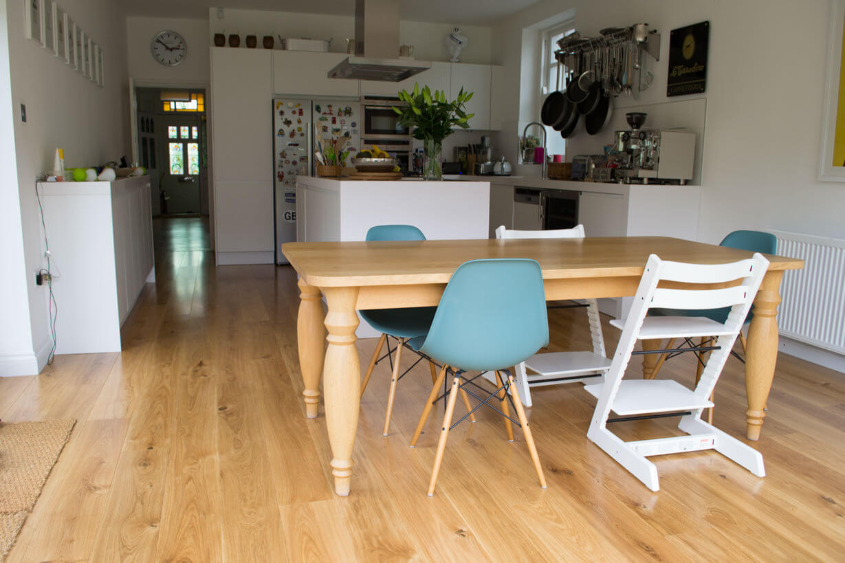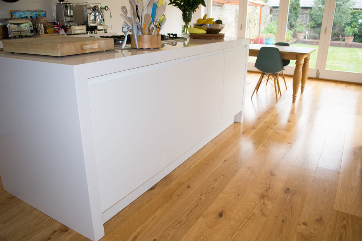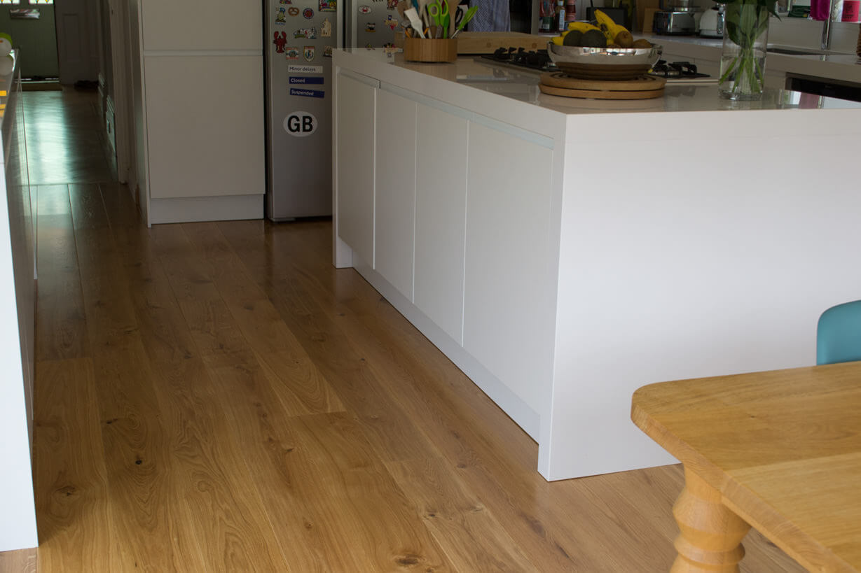 3 Oak Wood Flooring idea brief was to bring the warmth of natural wood into the Kitchen.