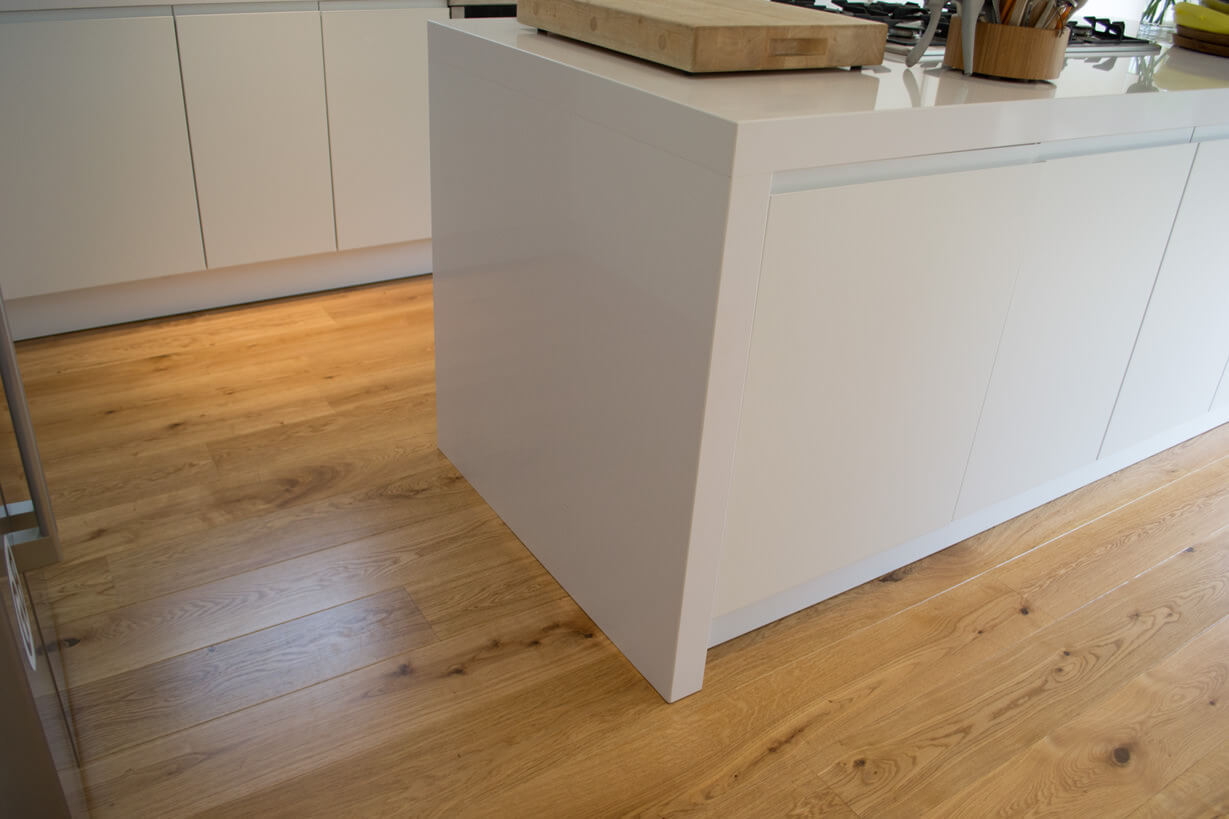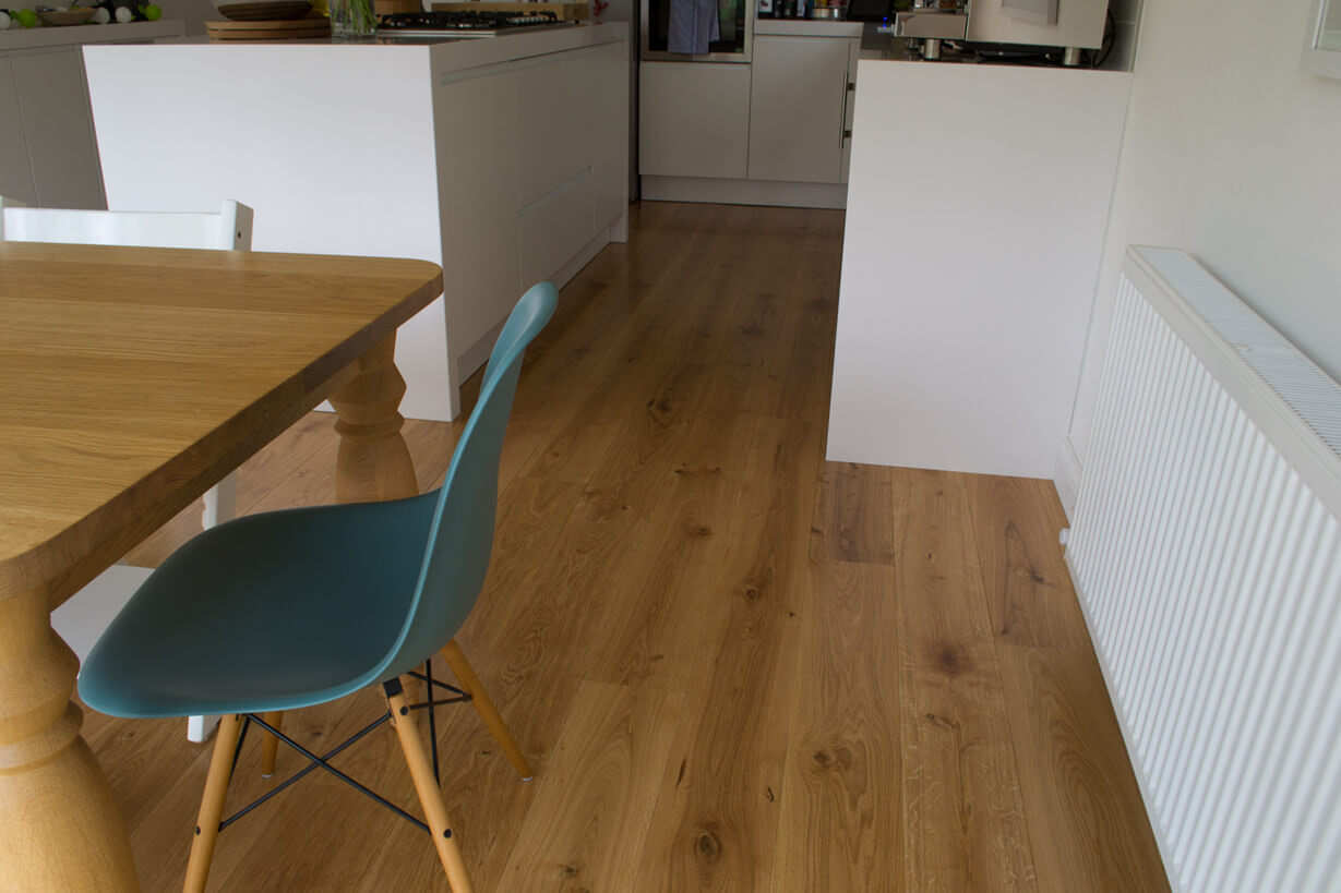 The dimension of the engineered flooring used was a 21mm x 180mm wide board in a character grade.