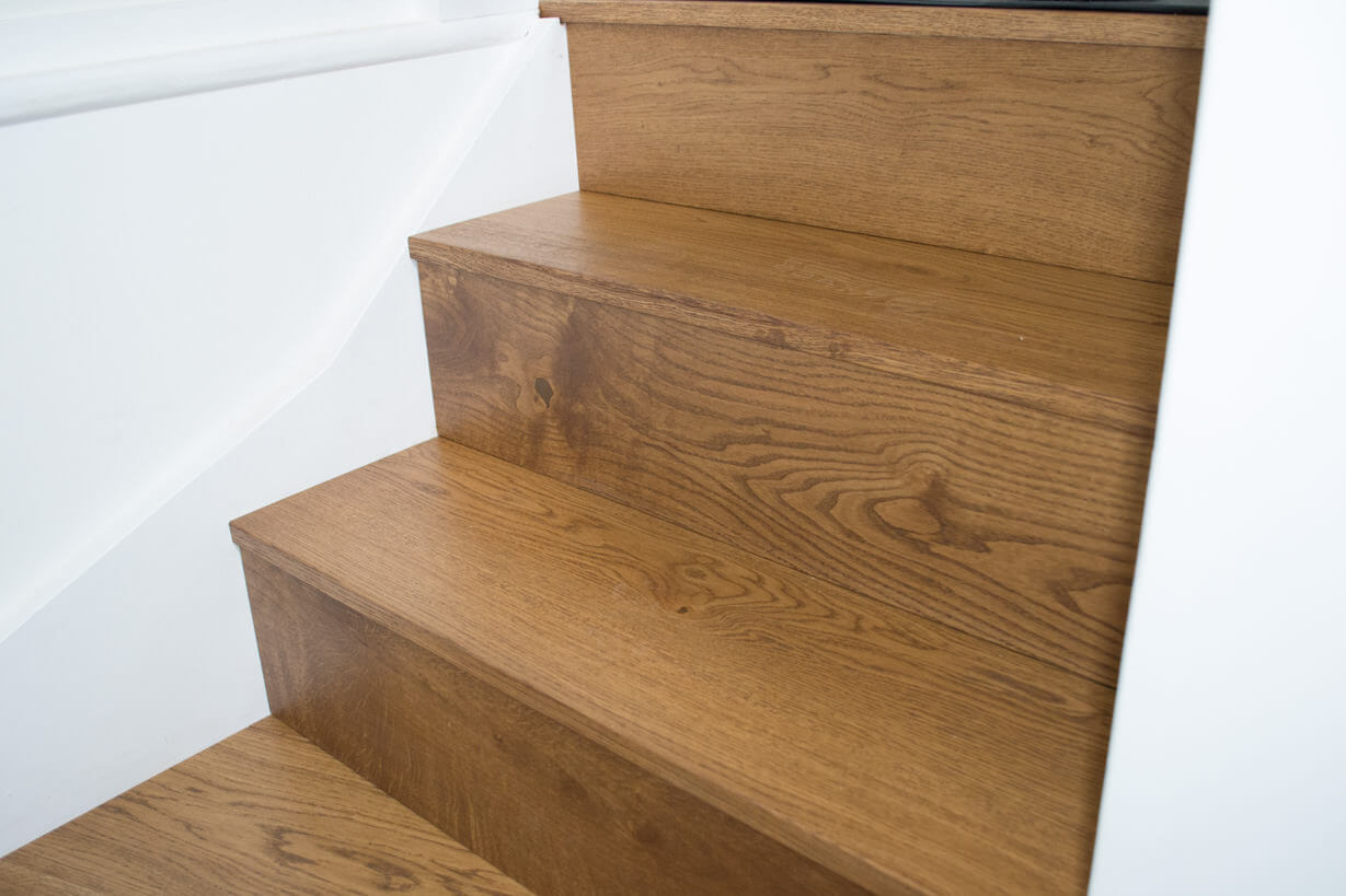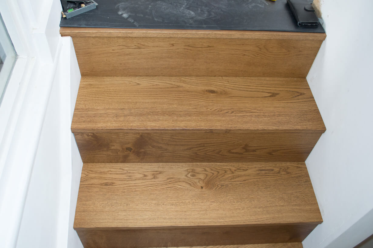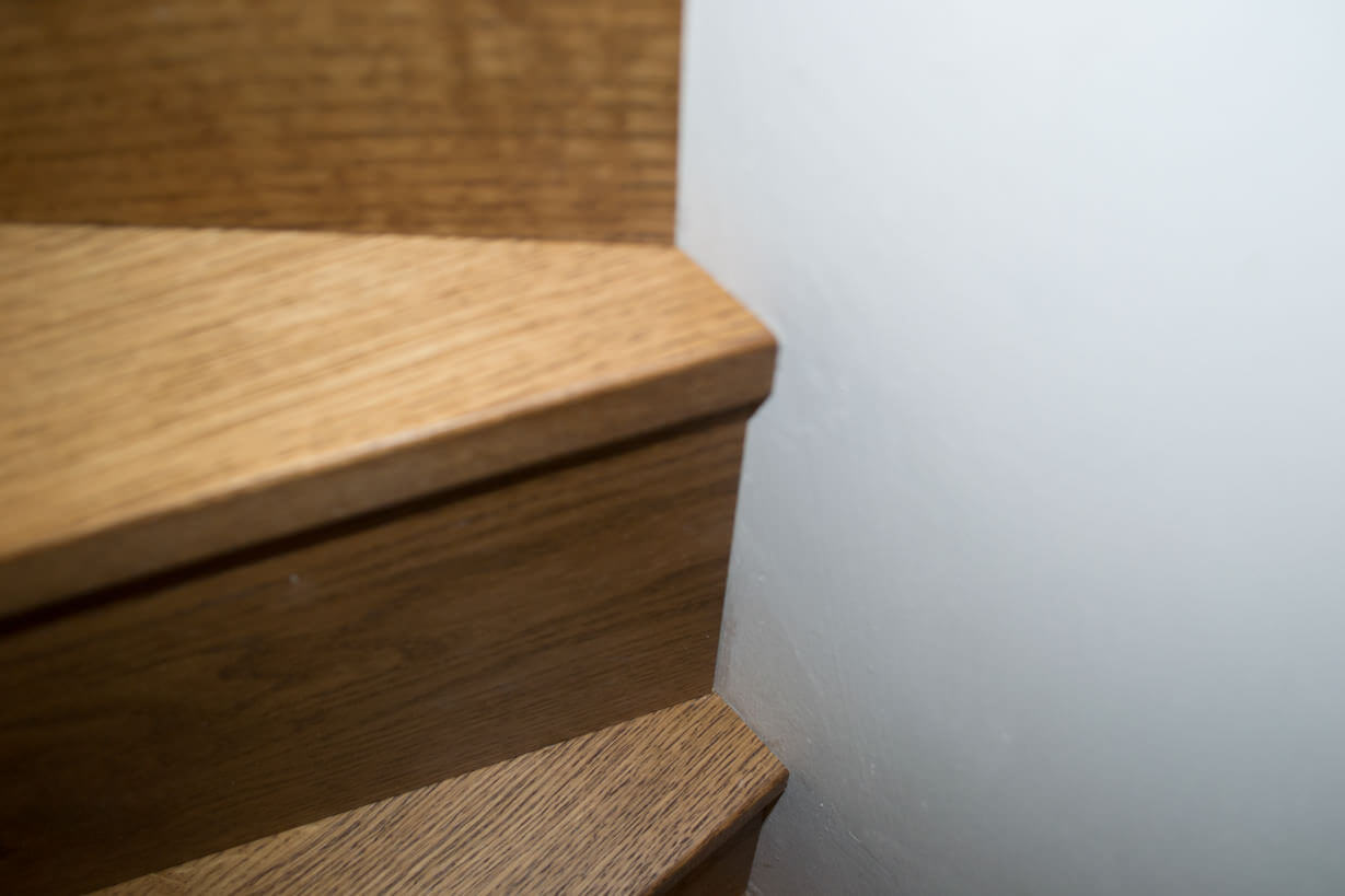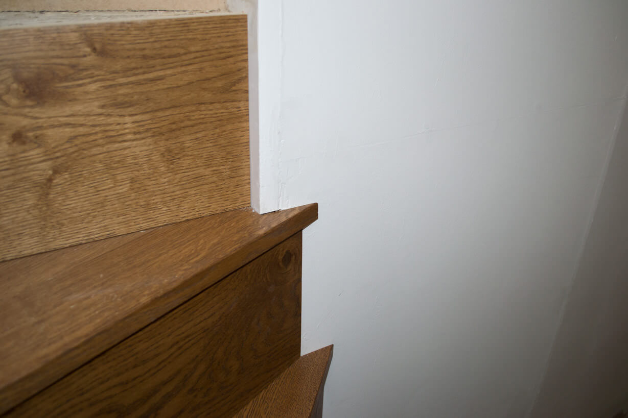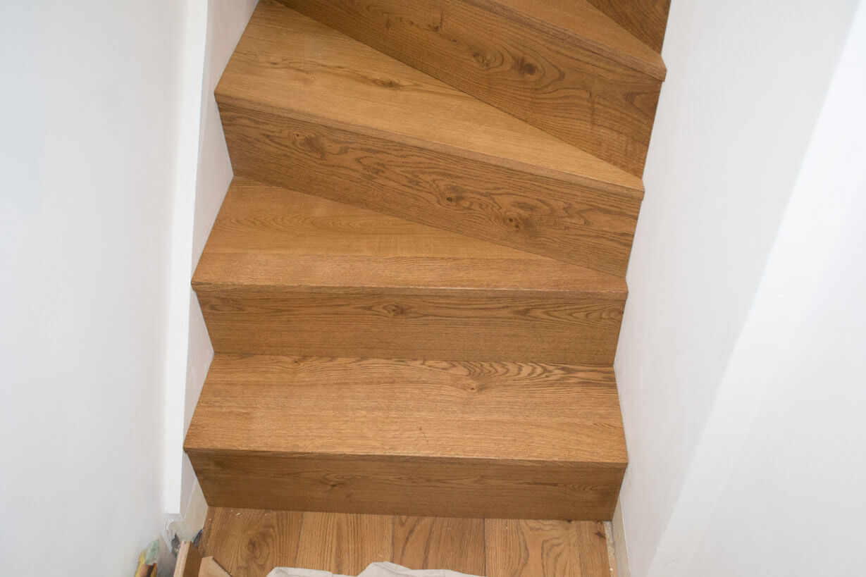 At this project we regenerated a staircase in a “Georgian” finish. As the walls next to the stairs are white we used prime grade oak to give it a clean and sleek finish. This particular finish was chosen by our designers to perfectly match the flooring that already existed on the floor above. This ensures that the finish looks perfectly natural and does not clash against the other colours in the house.