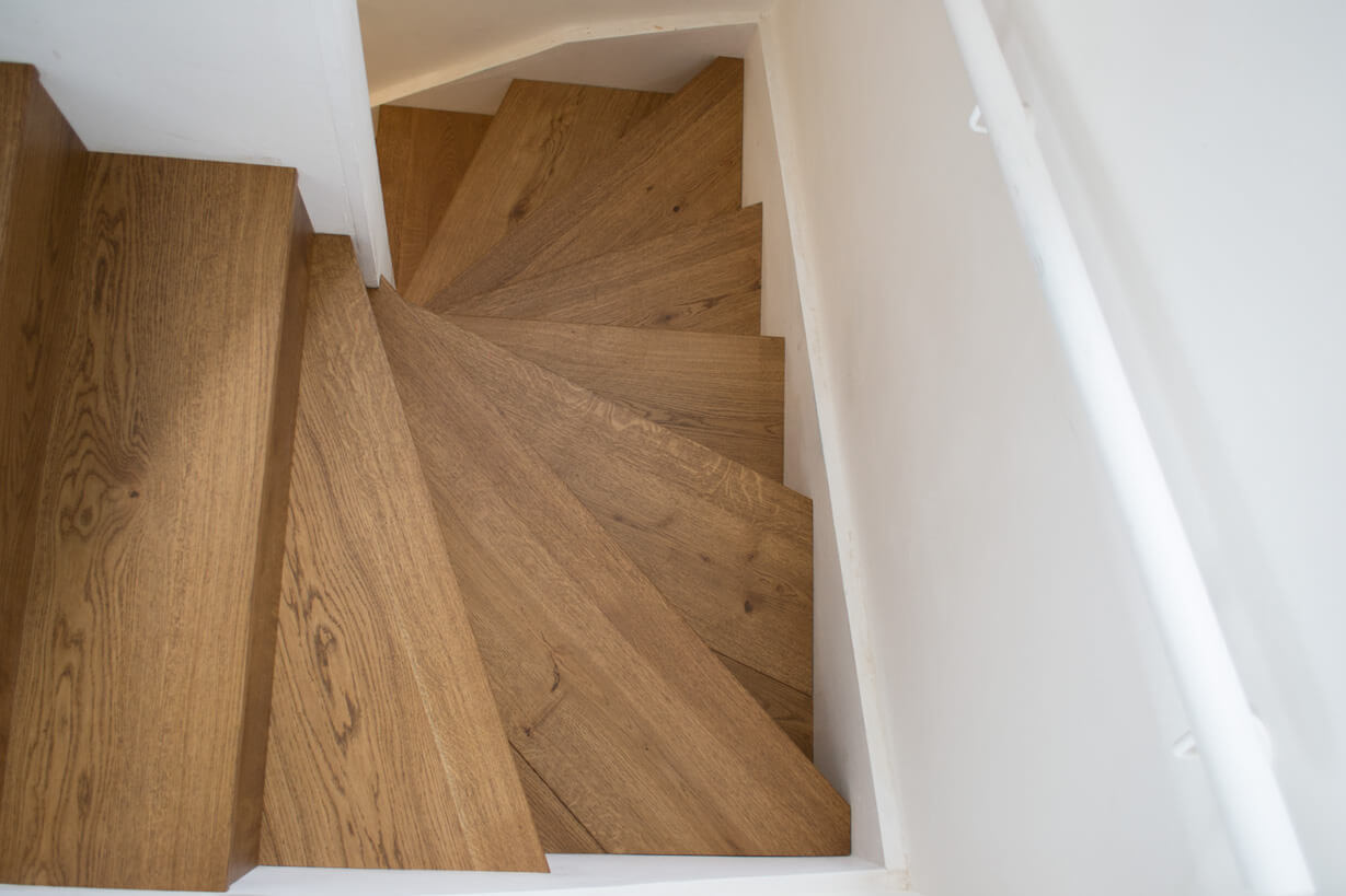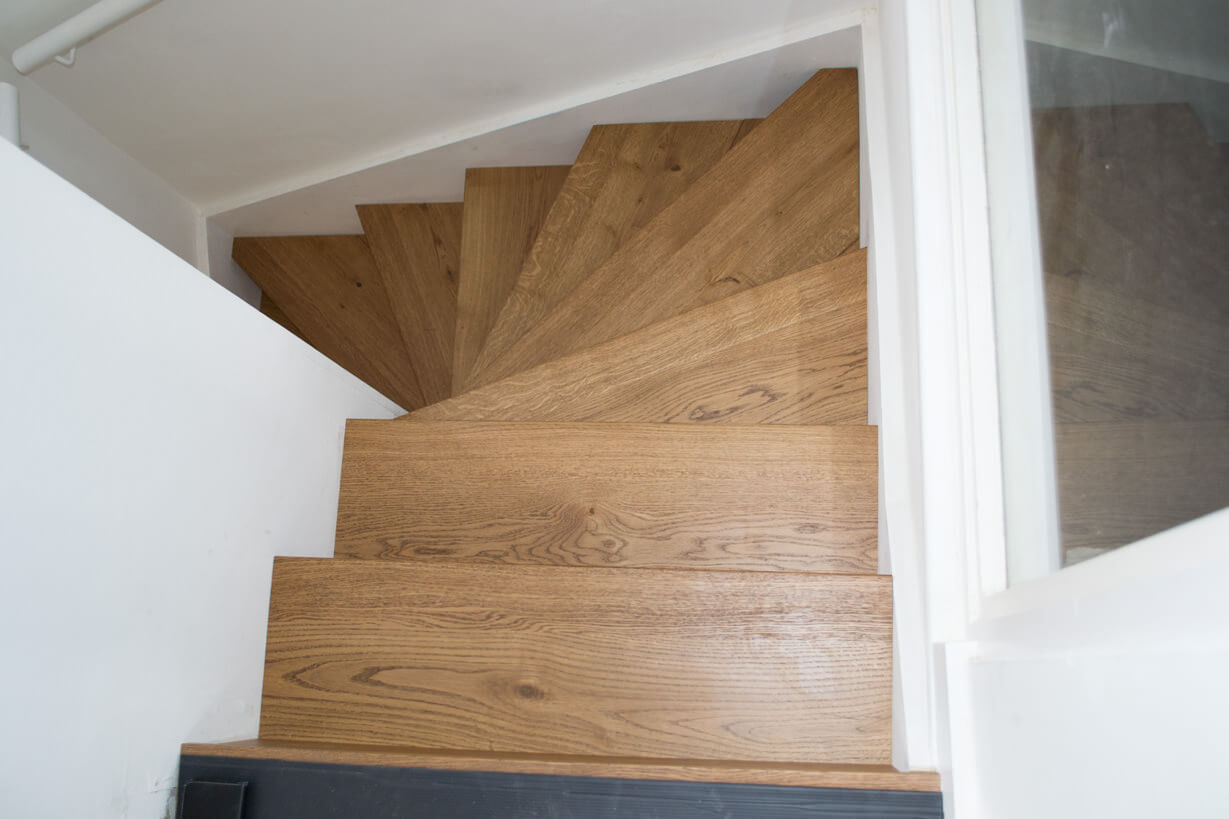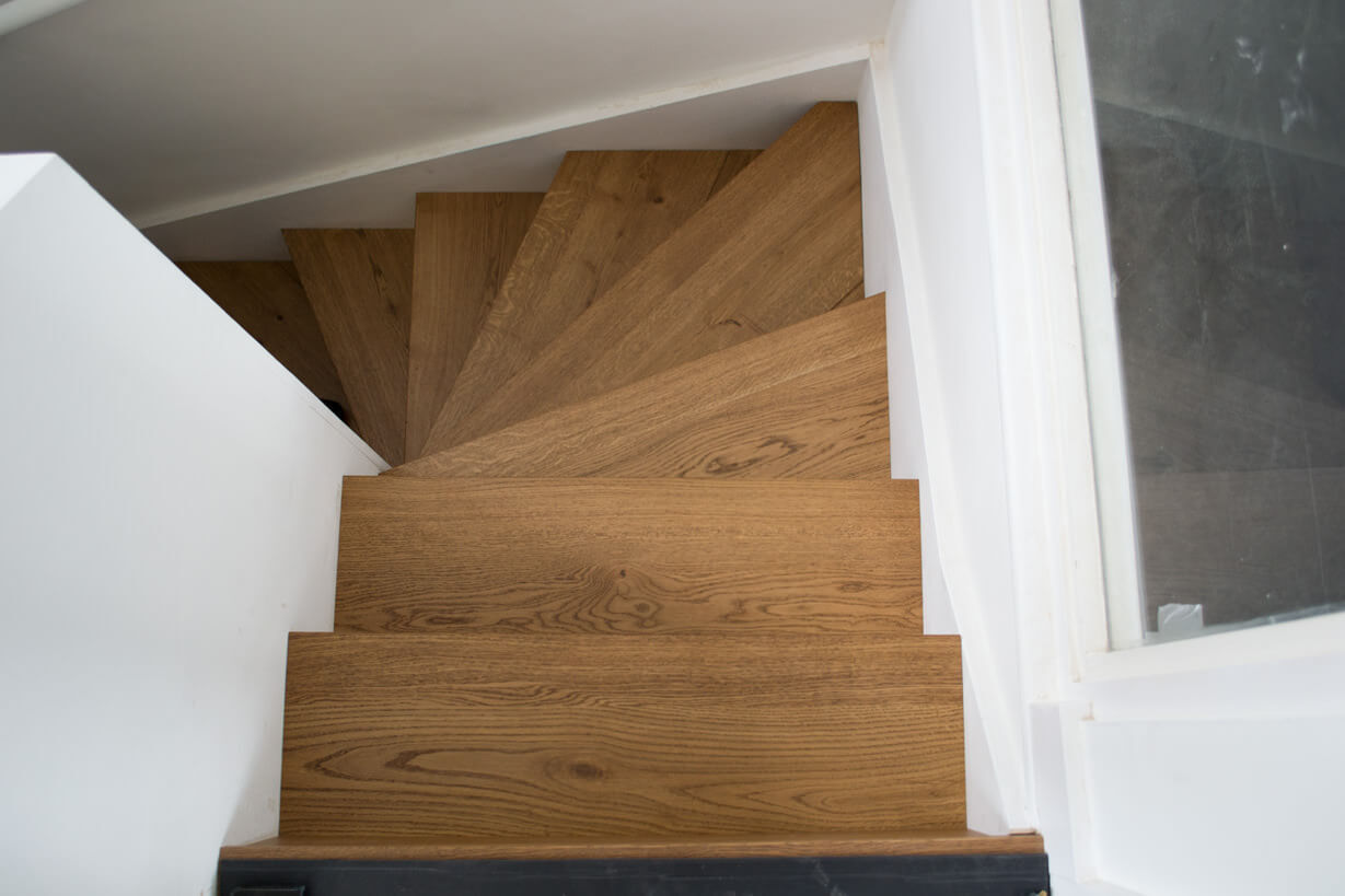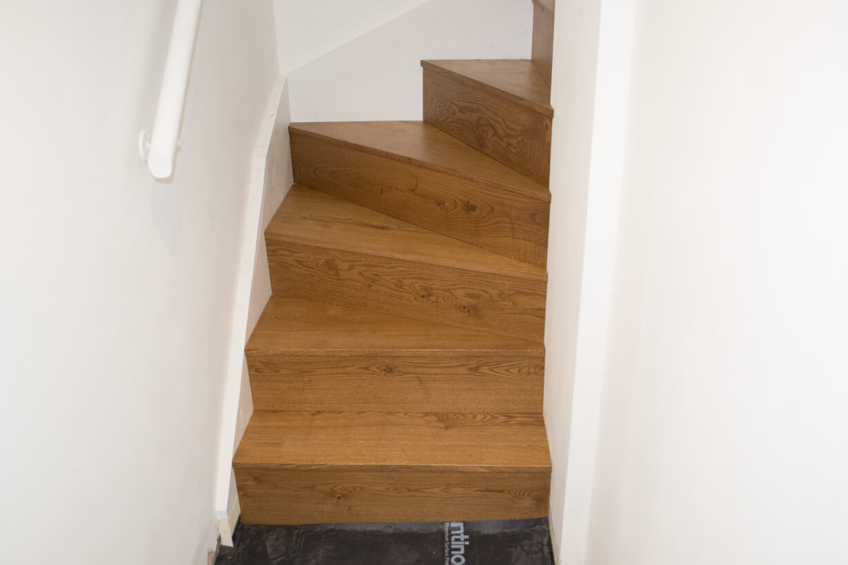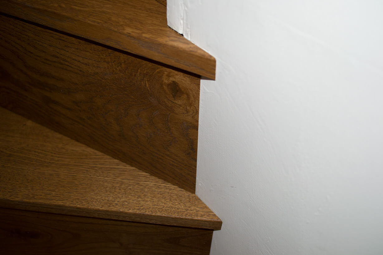 At this project we regenerated a staircase in a “Georgian” finish. As the walls next to the stairs are white we used prime grade oak to give it a clean and sleek finish. This particular finish was chosen by our designers to perfectly match the flooring that already existed on the floor above. This ensures that the finish looks perfectly natural and does not clash against the other colours in the house.