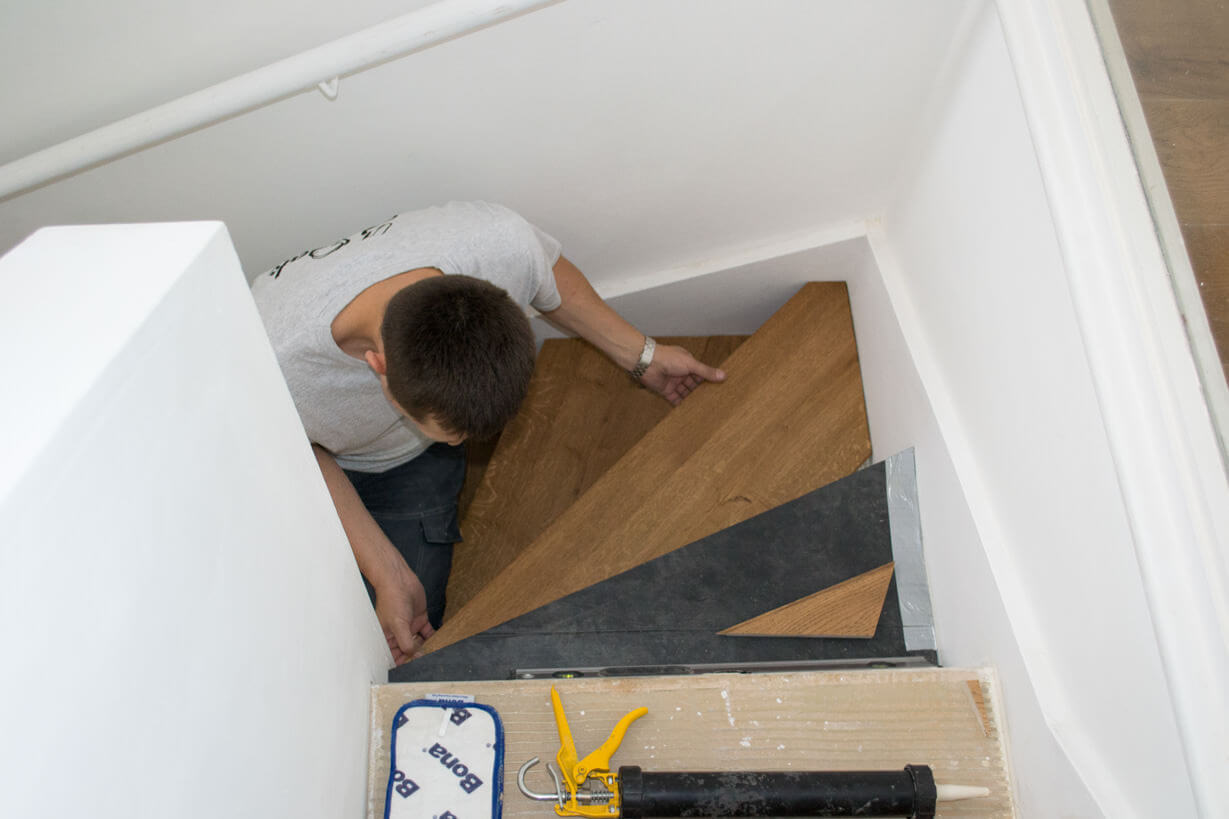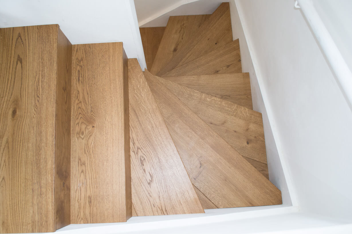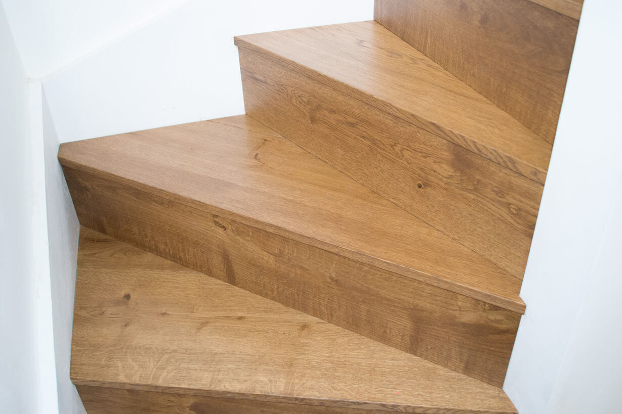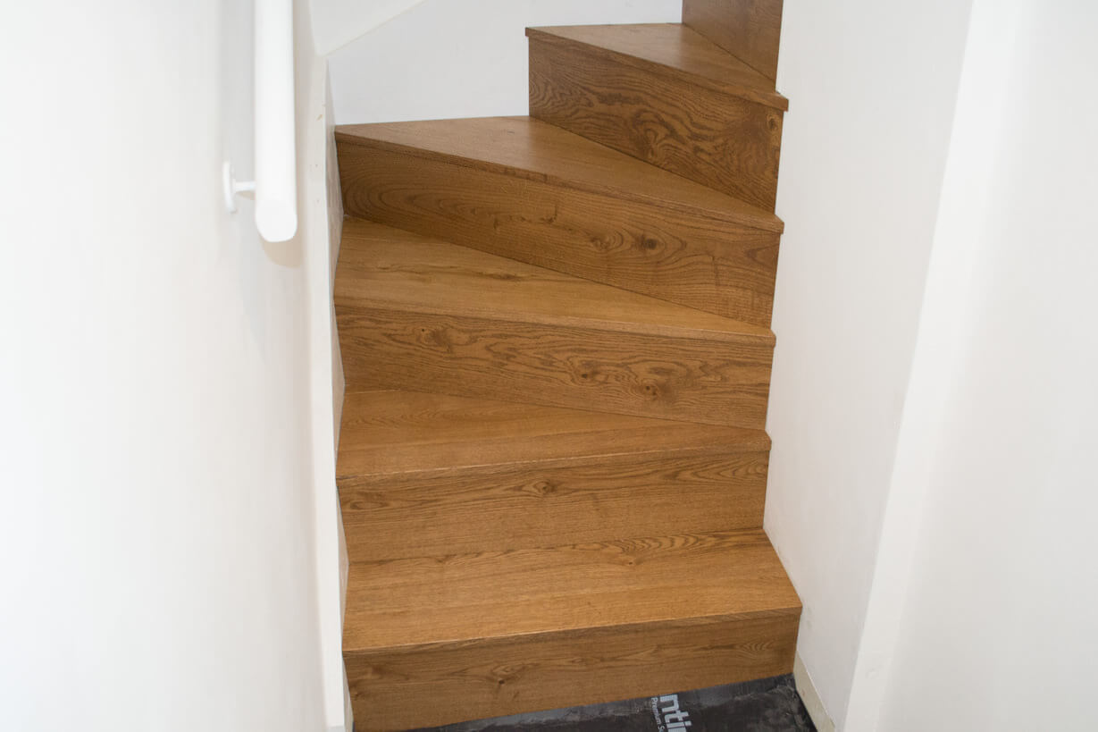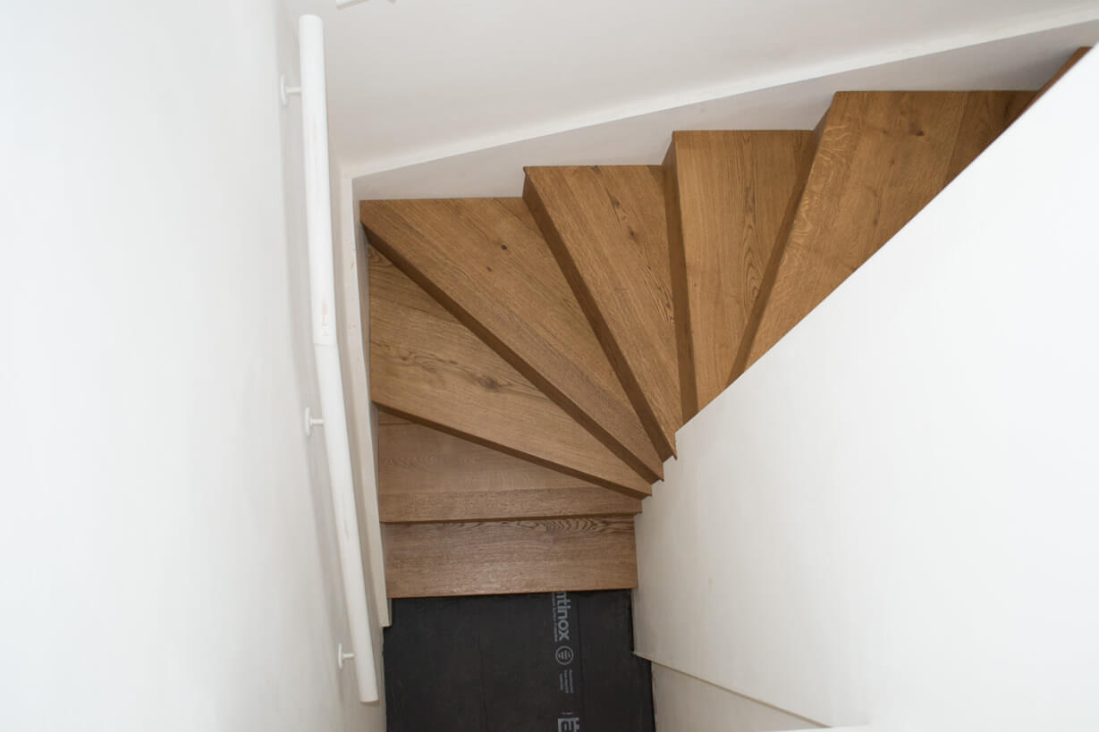 At this project we regenerated a staircase in a “Georgian” finish. As the walls next to the stairs are white we used prime grade oak to give it a clean and sleek finish. This particular finish was chosen by our designers to perfectly match the flooring that already existed on the floor above. This ensures that the finish looks perfectly natural and does not clash against the other colours in the house.