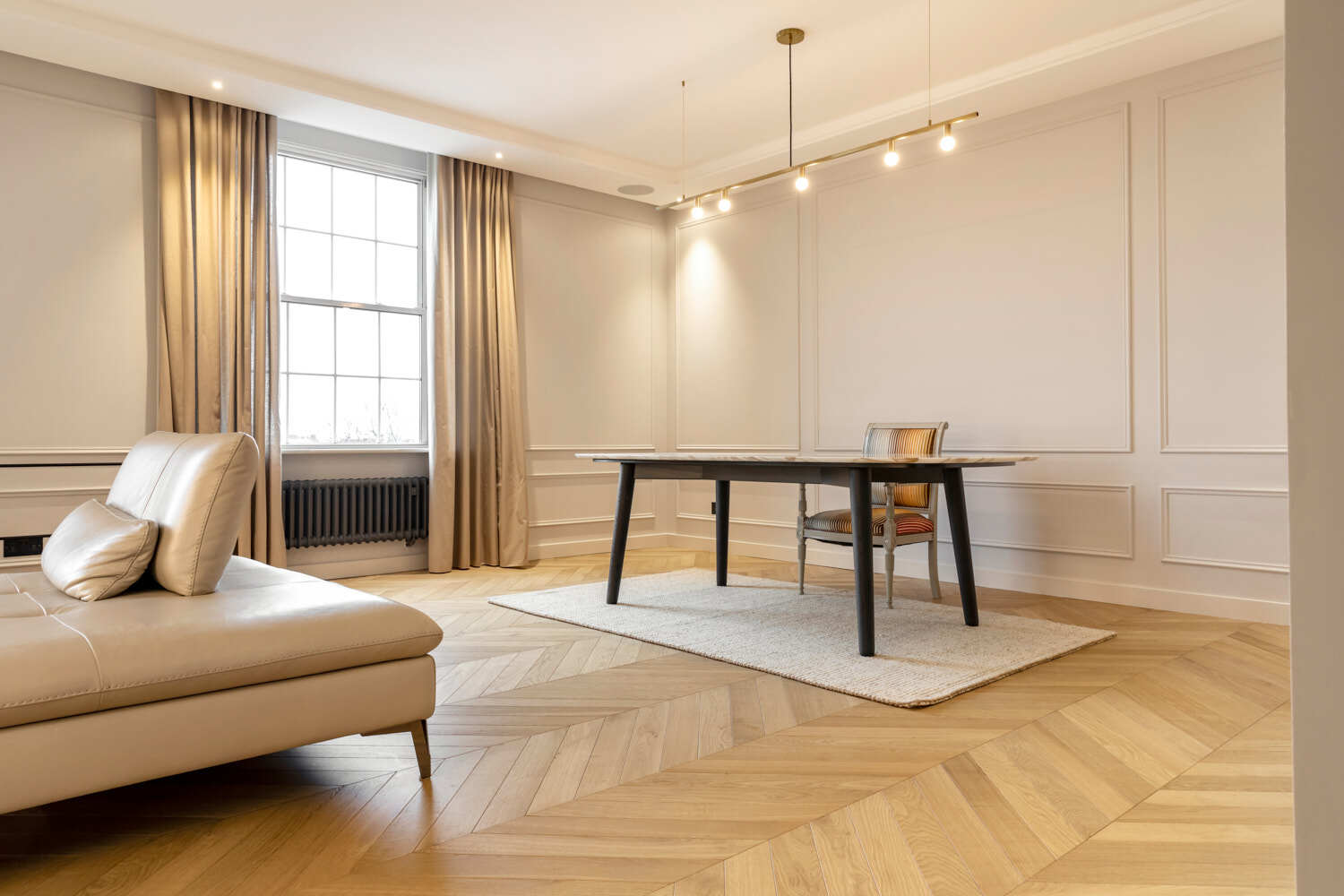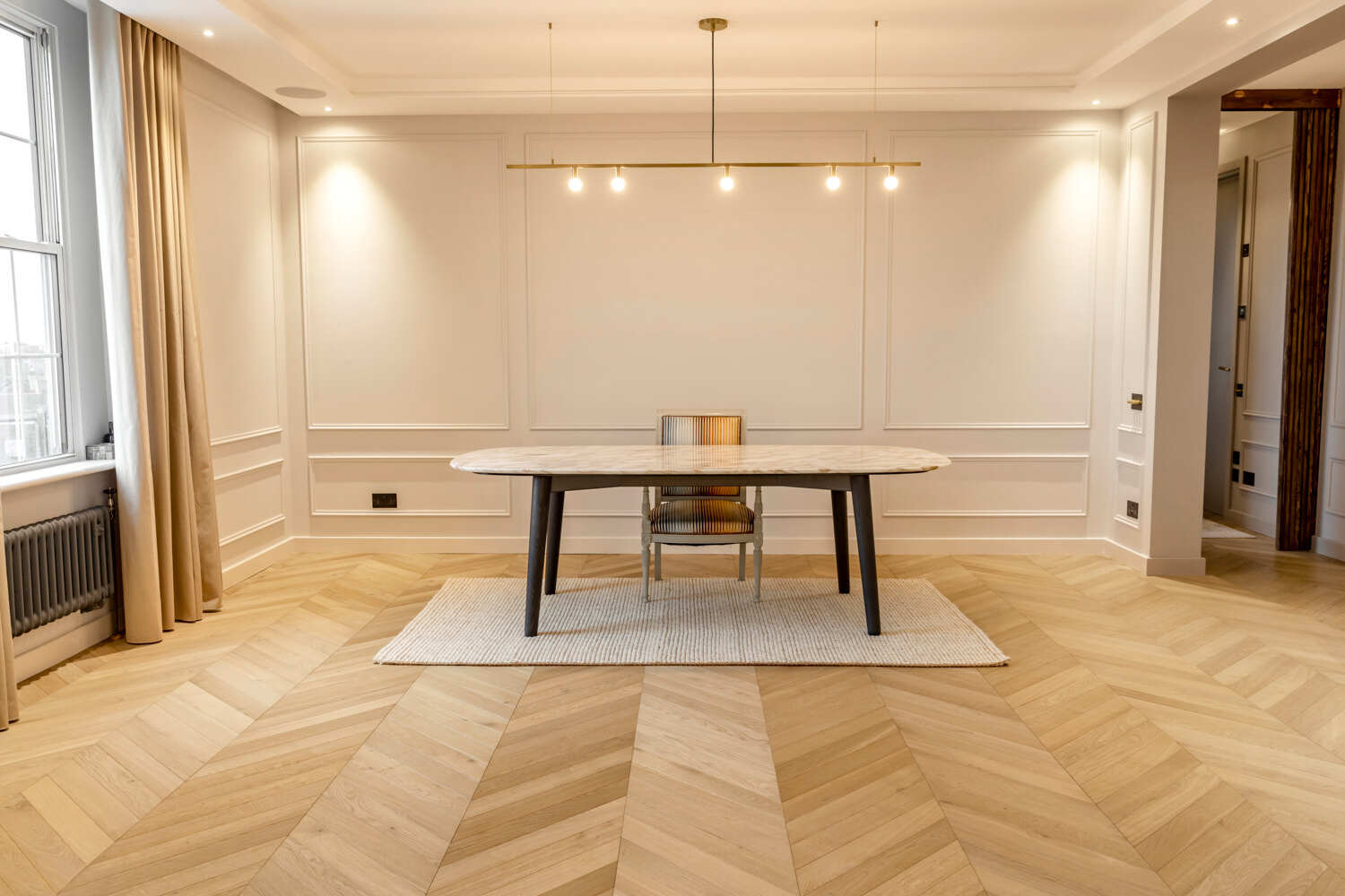 Located in the Kensington Olympia, this flooring project focused on installing a Smoky George Chevron pattern, overcoming challenges such as unexpected water damage. This case study showcases the artistry of choosing and fitting the chevron parquet flooring and our response to obstacles.