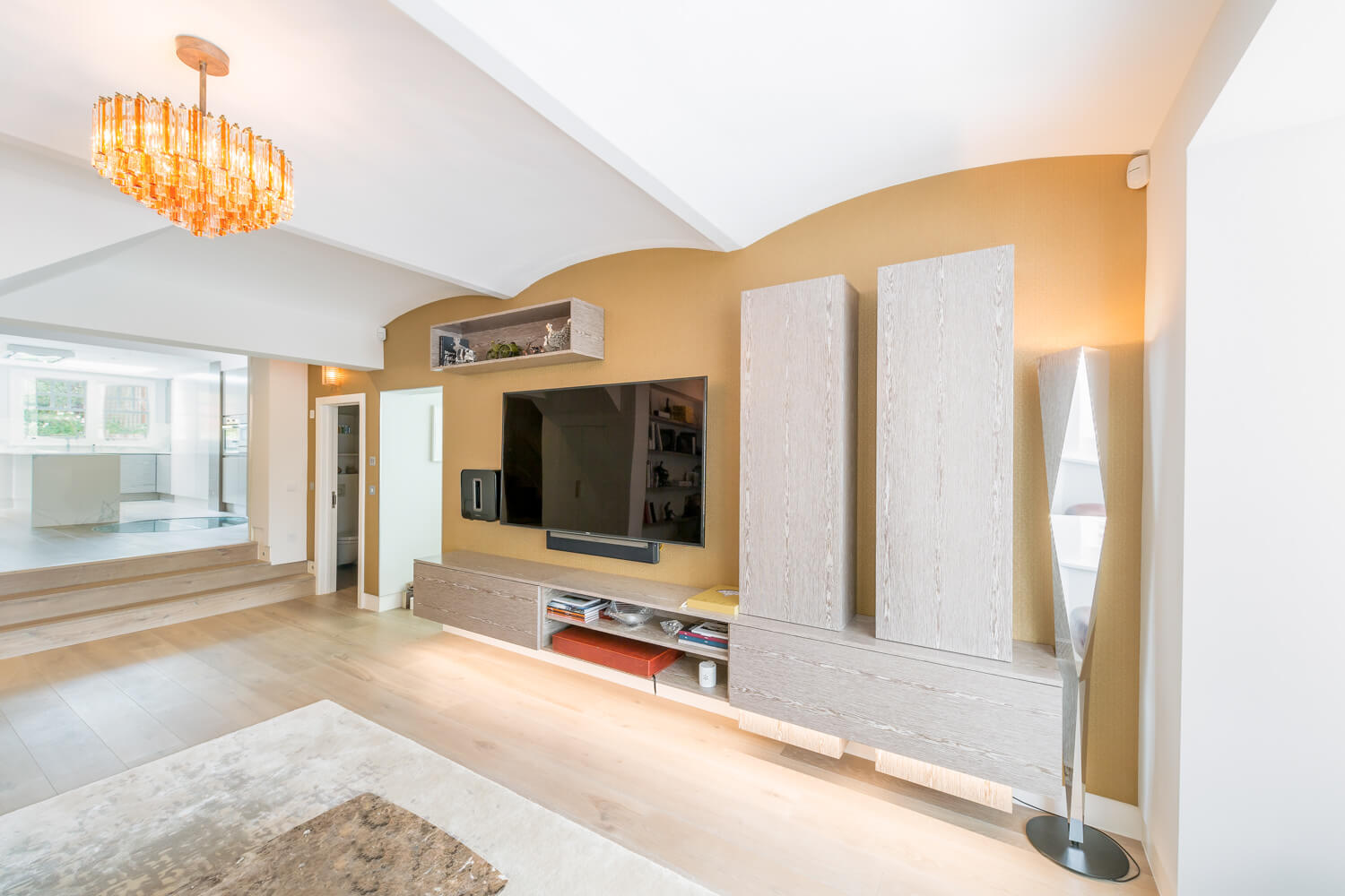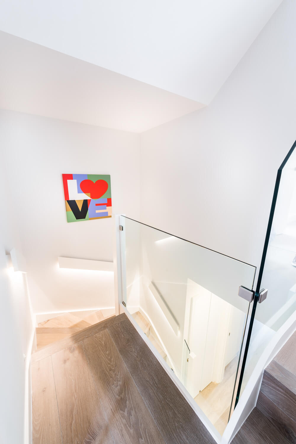 The aim of the project was to enhance the home’s contemporary aesthetic with flooring that complements the neutral colour palette, modern art, and clean lines throughout the space. The flooring needed to harmonize with glass, marble, and light wood accents while creating warmth and cohesiveness. Functionality was also a key focus, with features like hidden storage in the staircase and durable materials to accommodate everyday living.