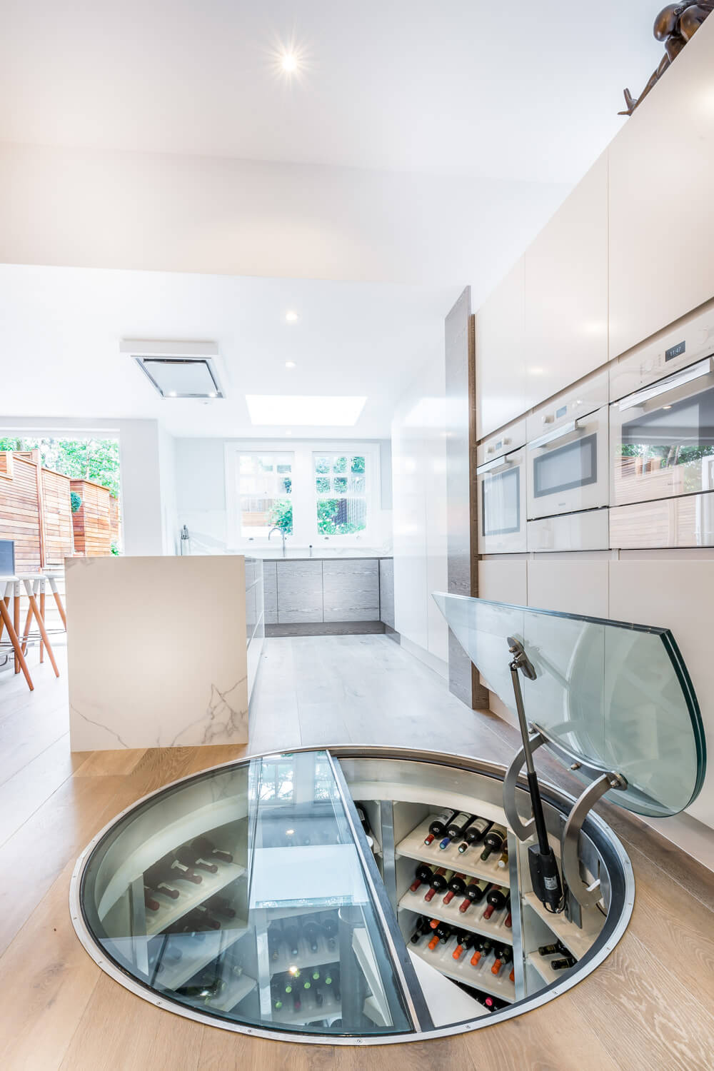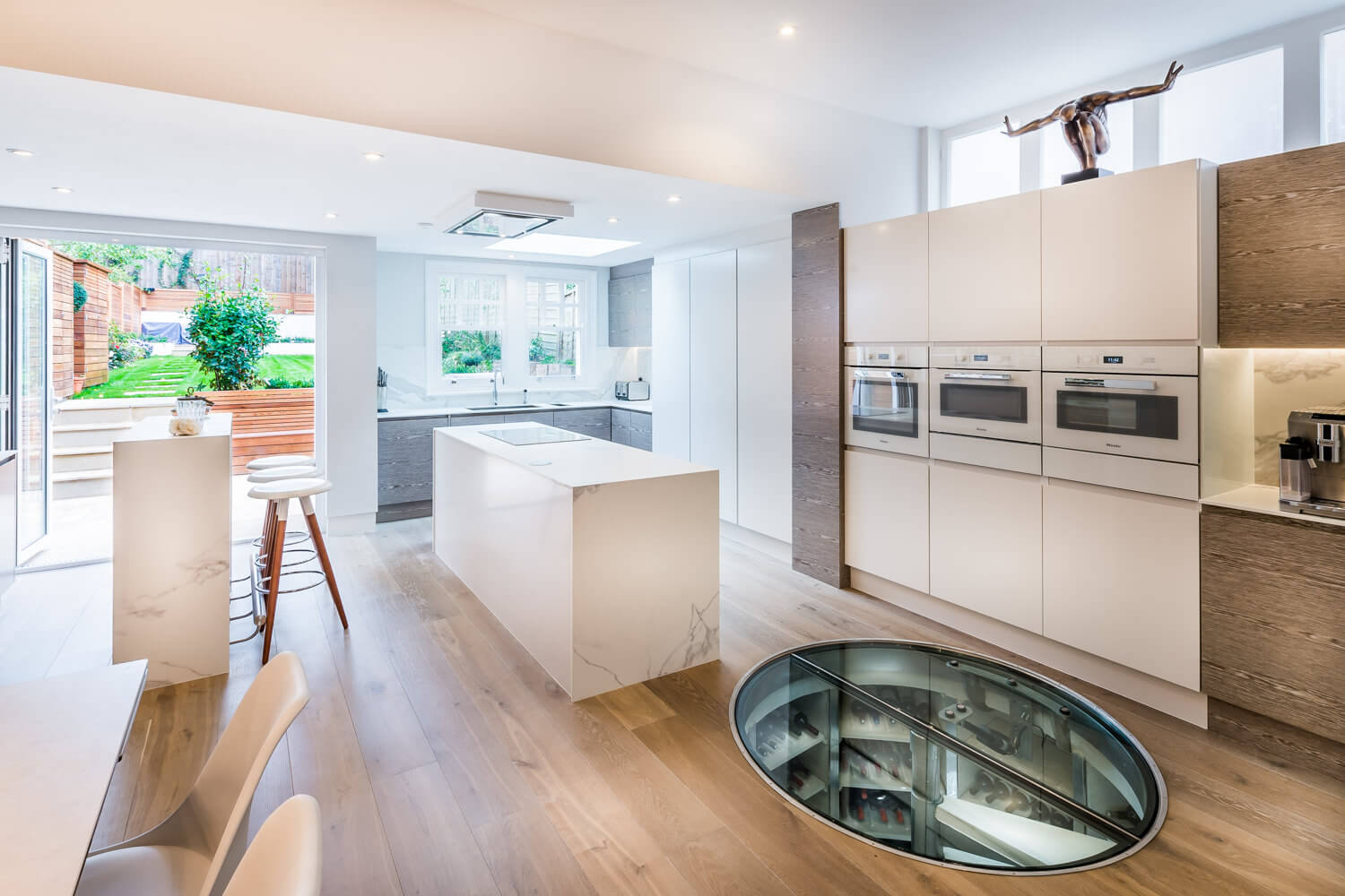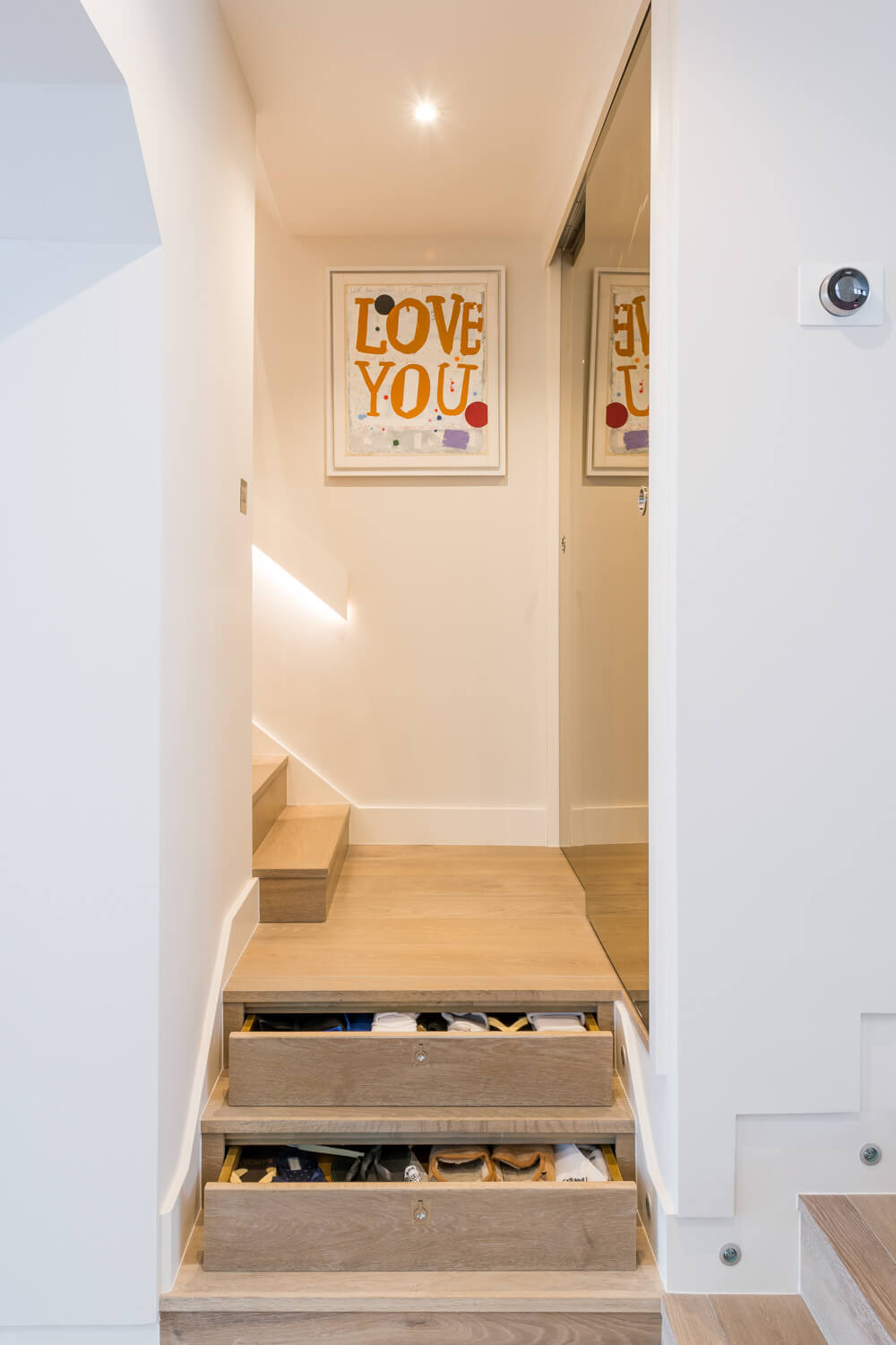 The Bespoke Slate Grey Flooring transformed the Hampstead Residence into a warm, contemporary space with a clean and high-quality finish. The textured grain of the flooring contrasts beautifully with glass elements and neutral tones, creating depth and sophistication. Its seamless integration across the home, from the hidden storage staircase to the open-plan kitchen, enhances both aesthetics and functionality. The result is a bright, modern living space that combines comfort and style.