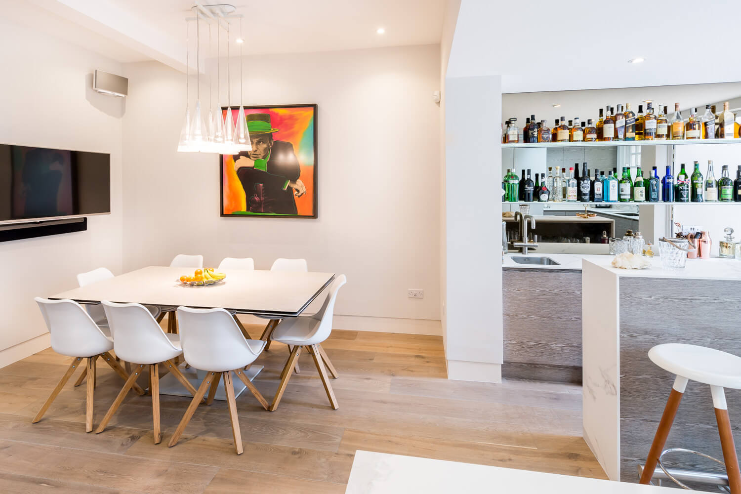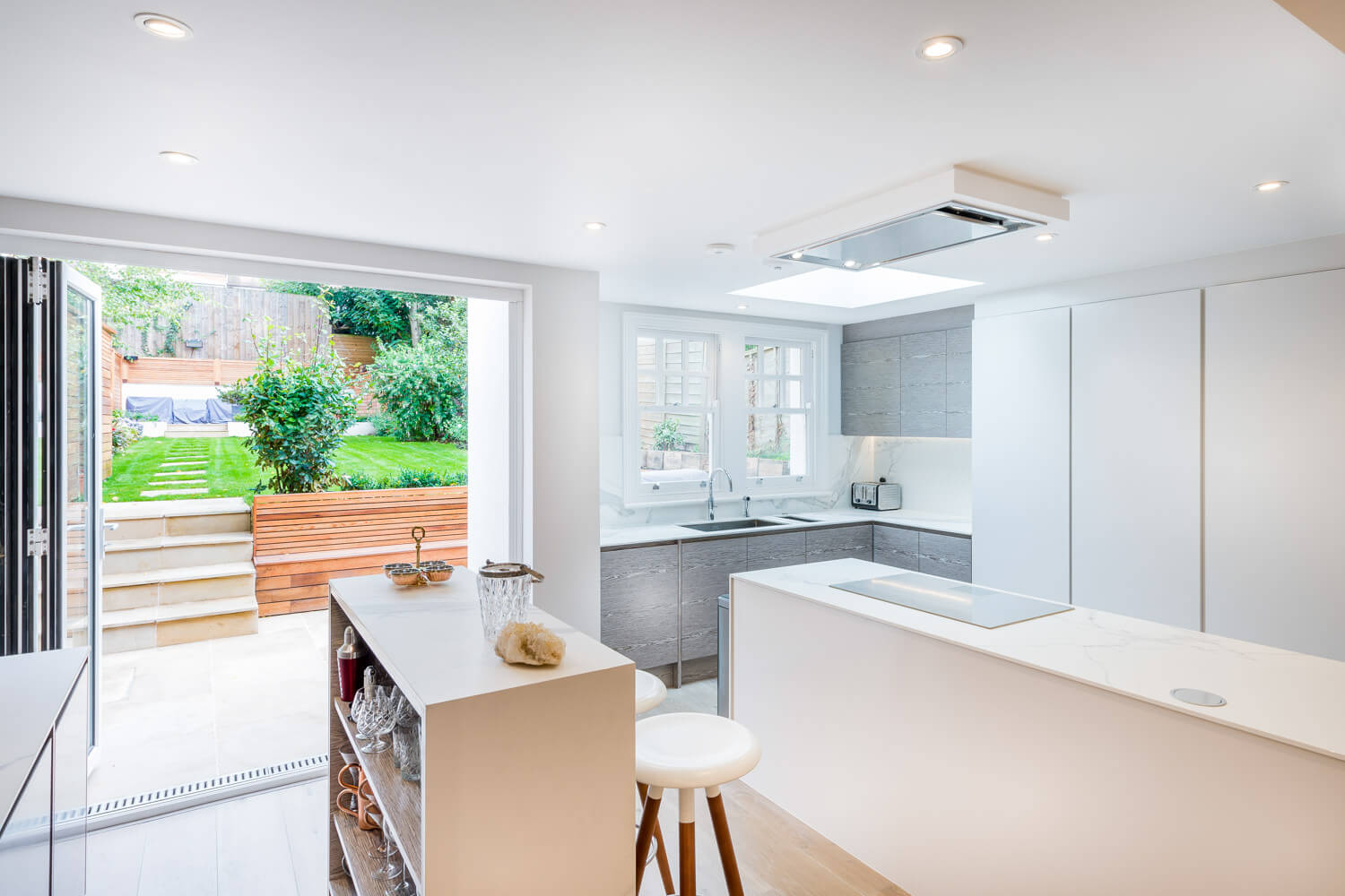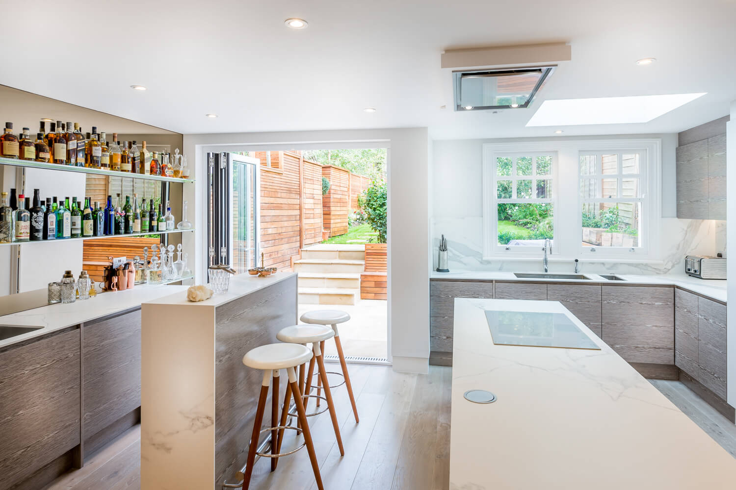 The Bespoke Slate Grey Flooring transformed the Hampstead Residence into a warm, contemporary space with a clean and high-quality finish. The textured grain of the flooring contrasts beautifully with glass elements and neutral tones, creating depth and sophistication. Its seamless integration across the home, from the hidden storage staircase to the open-plan kitchen, enhances both aesthetics and functionality. The result is a bright, modern living space that combines comfort and style.
