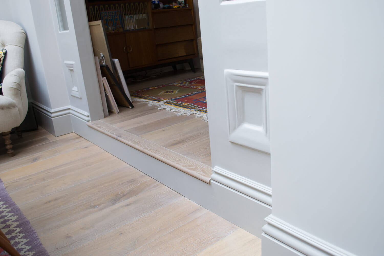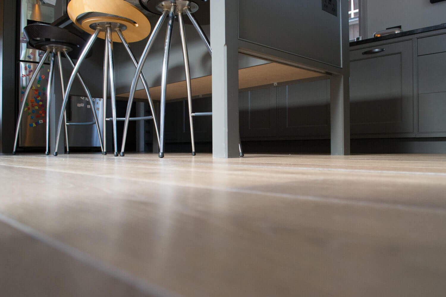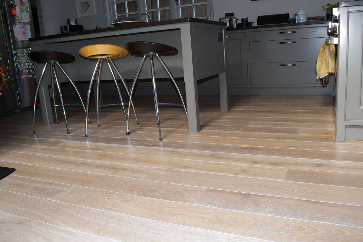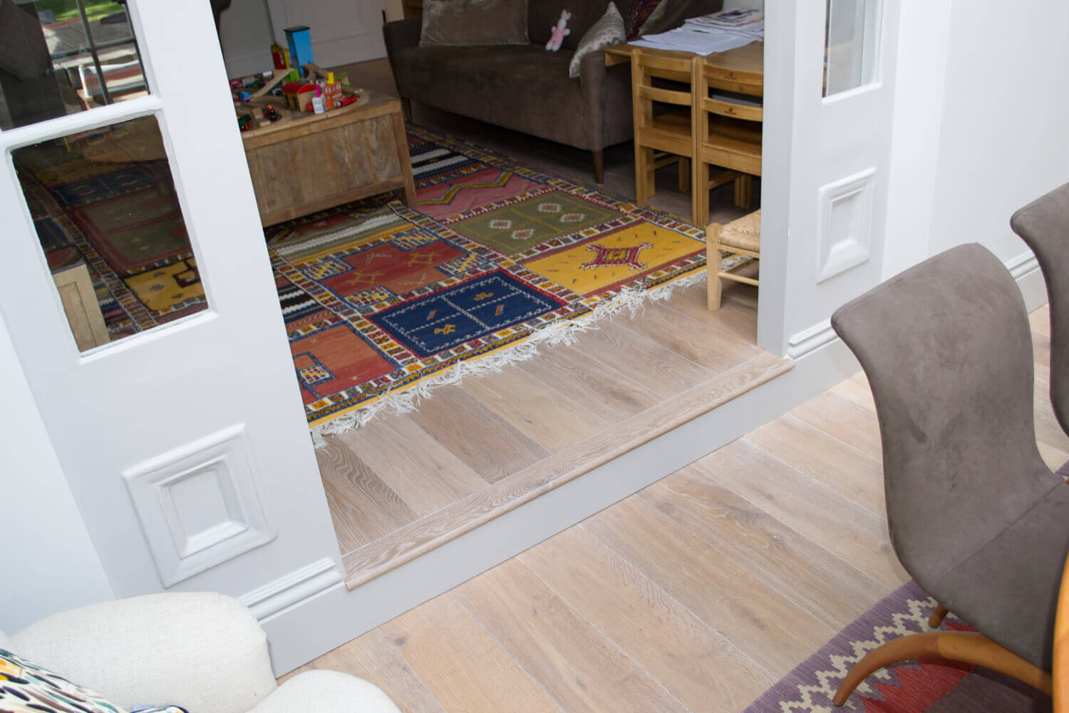 Marlborough Crescent – 21mm x 180mm – Character Grade – Brushed Fumed Bespoke Finish. Engineered Oak is suitable for use with underfloor heating. This bespoke fumed floor has warm notes of Oak with subtle hints of grey that match perfectly with the classic décor. A fantastic result was achieved. The use of Oak flooring with traditional style furniture and neutral colour schemes bring a lot of character and charm to this project.