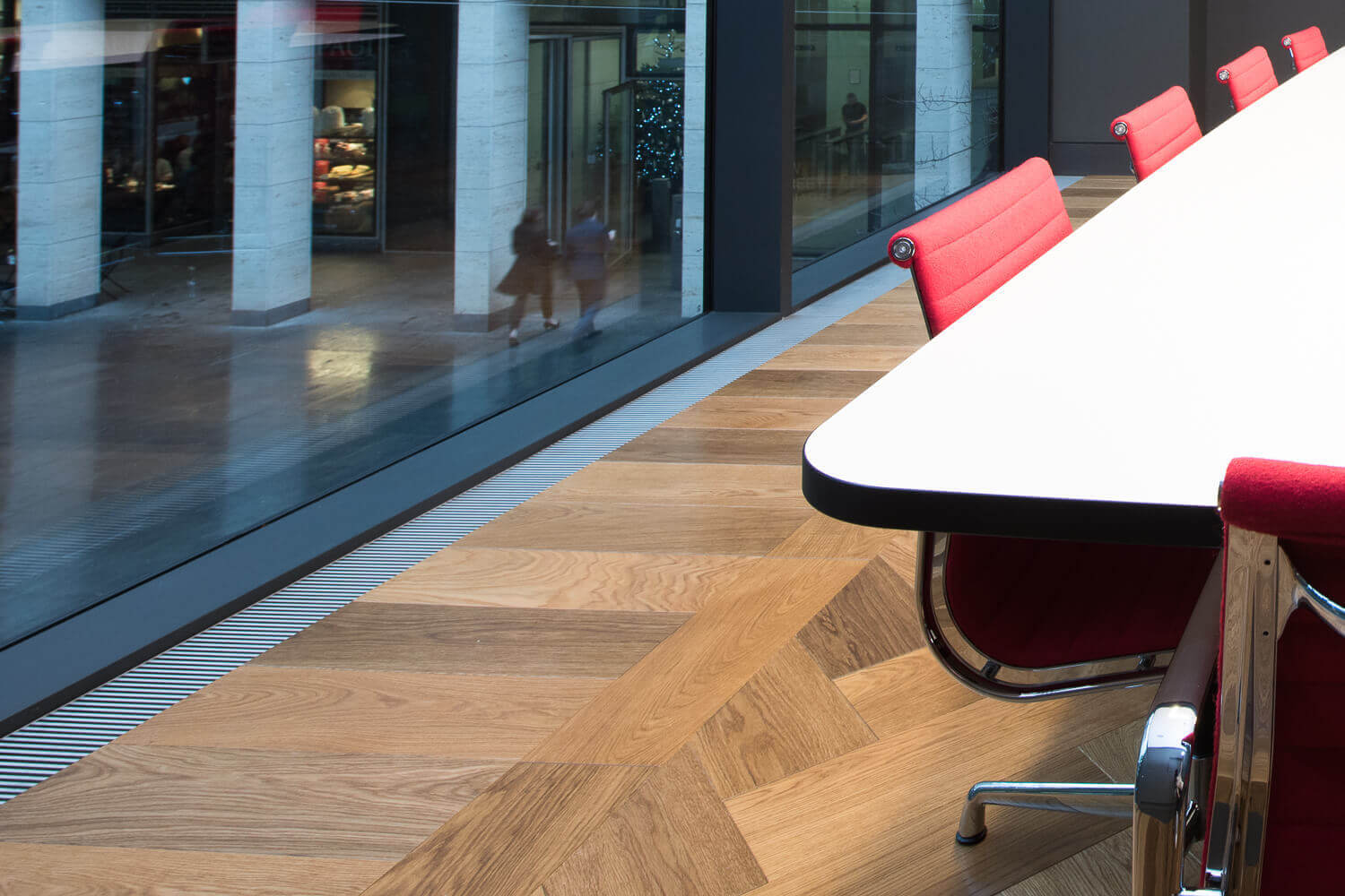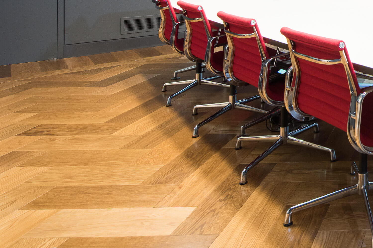 Herringbone Parquet 21mm x 200mm x 600mm in Natural Bronze – This modernised Office in the heart of central London has been refurbished using contemporary oversized parquet blocks. Our two-toned Natural Bronze looks stunning with light and dark tone variation achieving a wonderful contrasting effect.