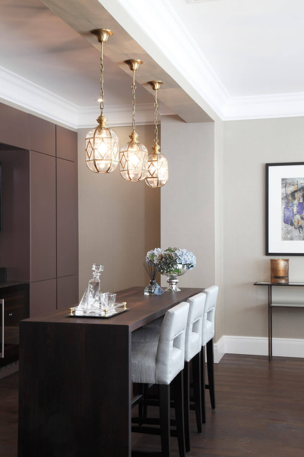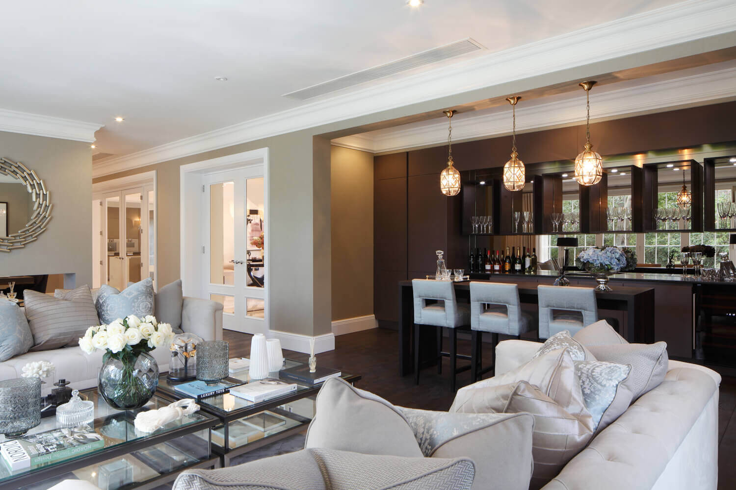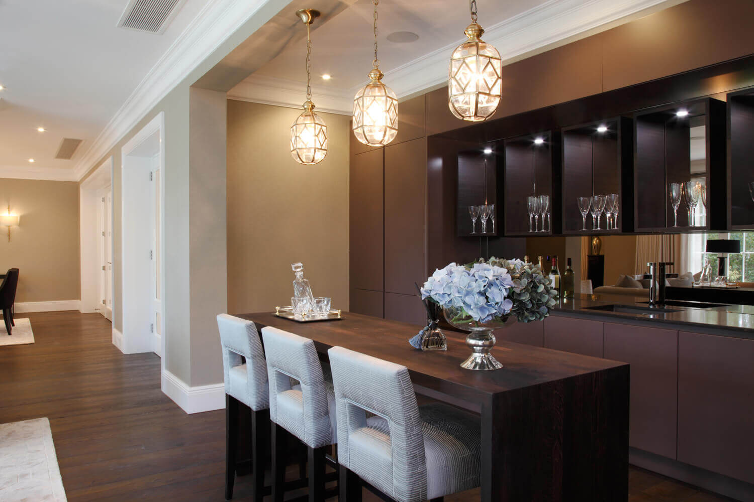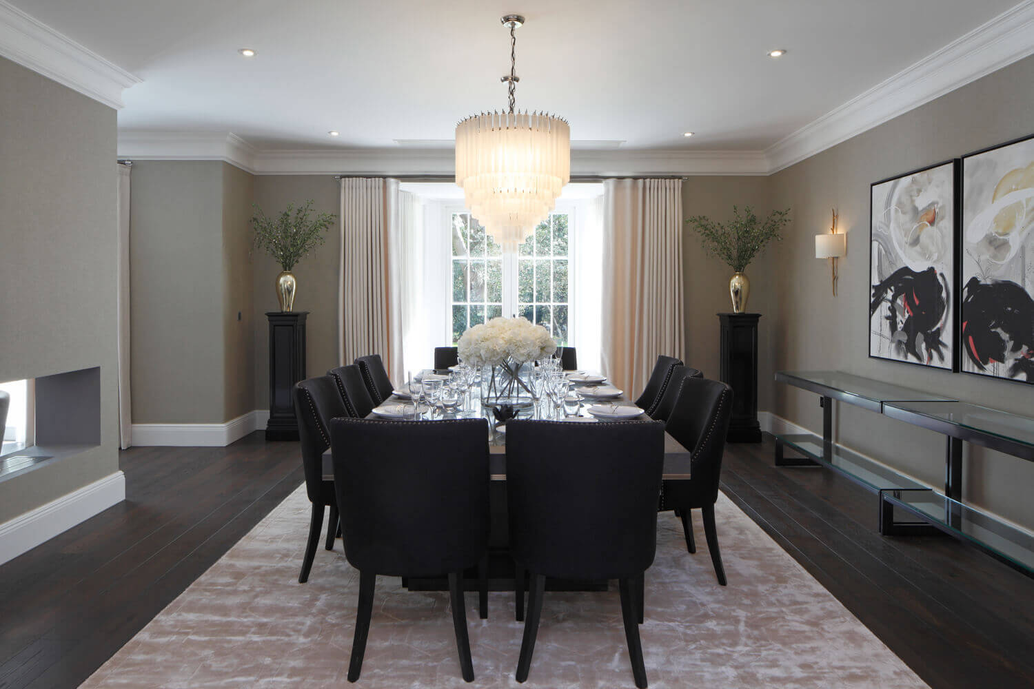 3 Oak has supplied and fitted engineered oak planks for this project located in Oxshott, Surrey. We were working closely with the interior designers on this modern classic design project within a prestigious country development. An elegant finish is achieved with these deep ebony coloured oak planks with longboard with mixed widths up to 2.8m.