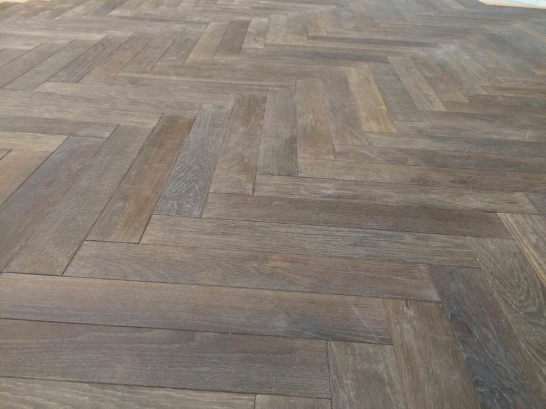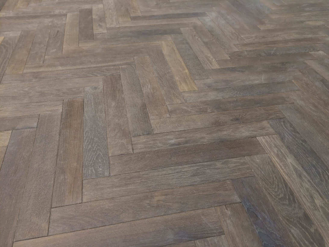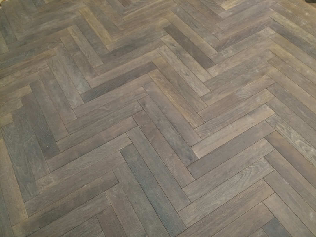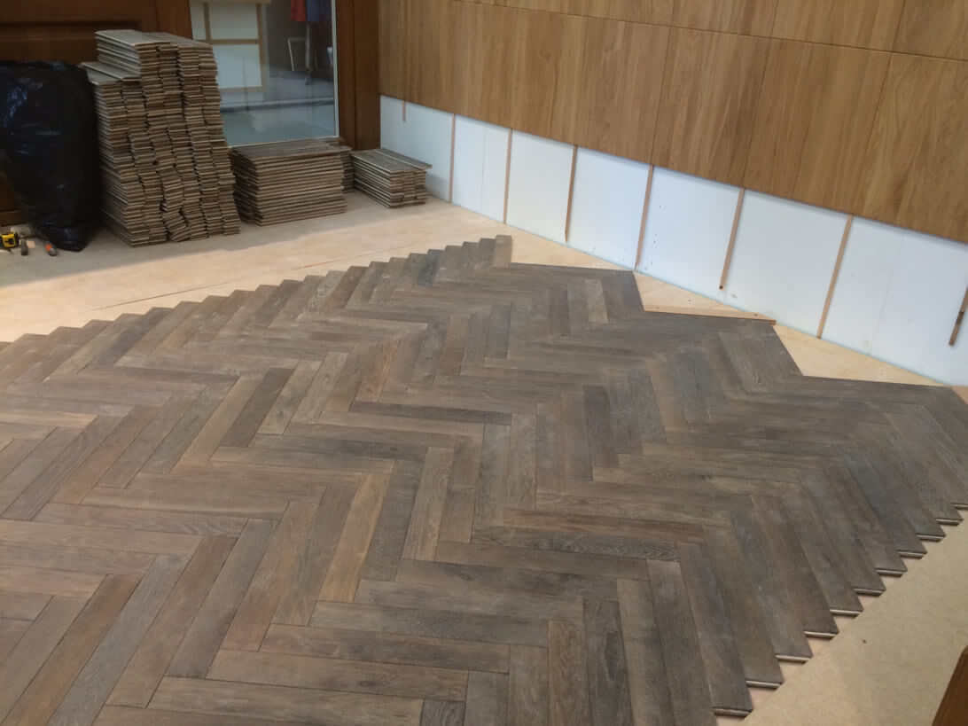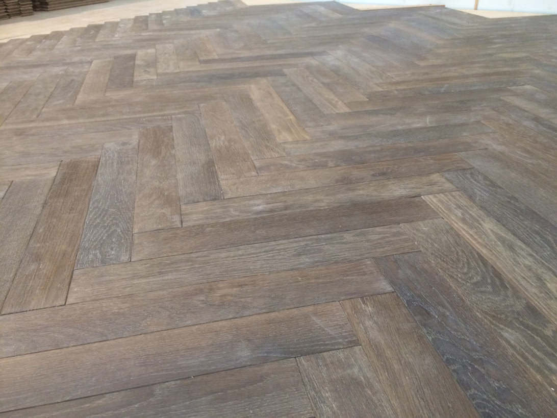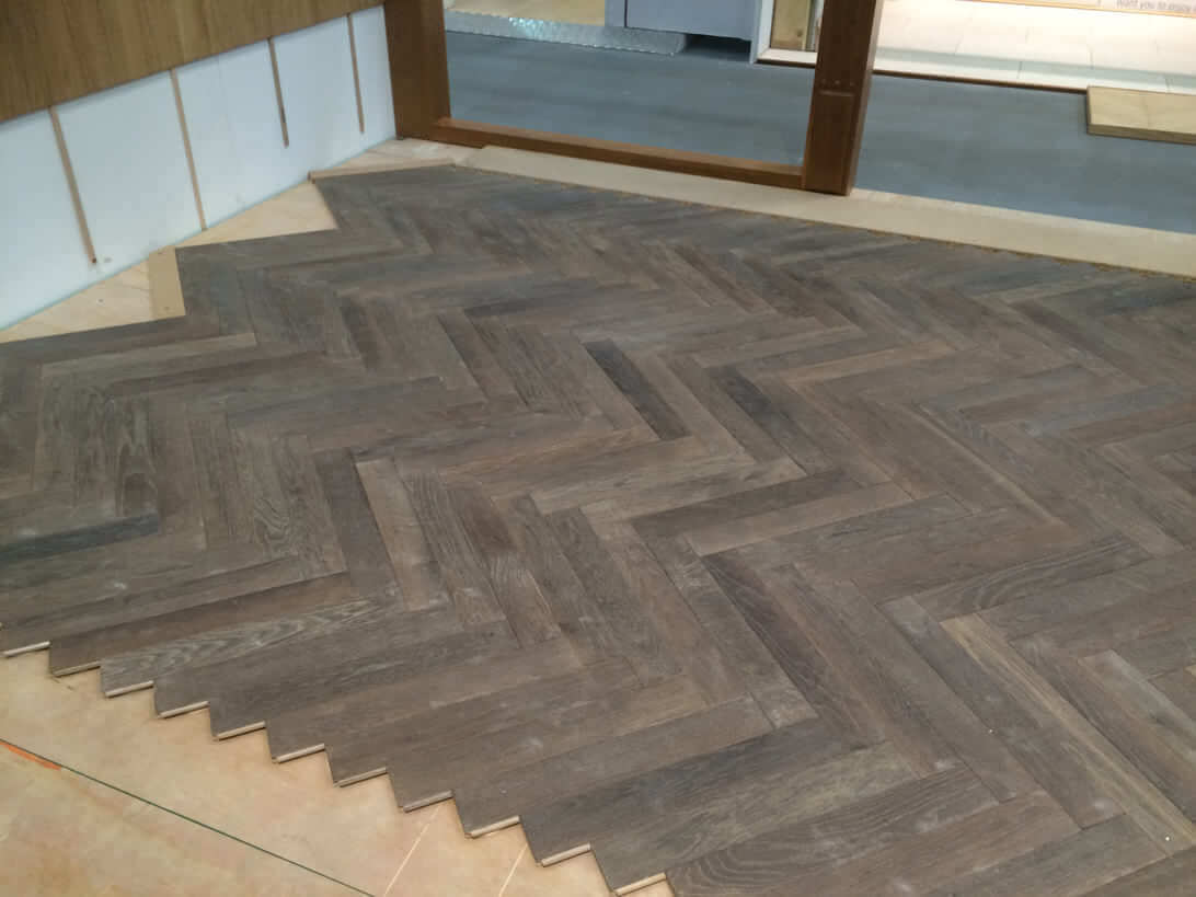 Our showroom at the National Self Build & Renovation centre is nearing completion and we are especially happy with the reclaimed Parquet floor, pictured here being installed. It’s a new floor but the subtle distressing makes it look just like reclaimed parquet flooring of triple the price. We’ll be sure to put his one into regular production as soon as possible.
