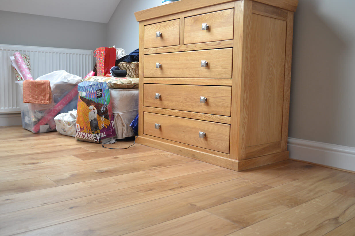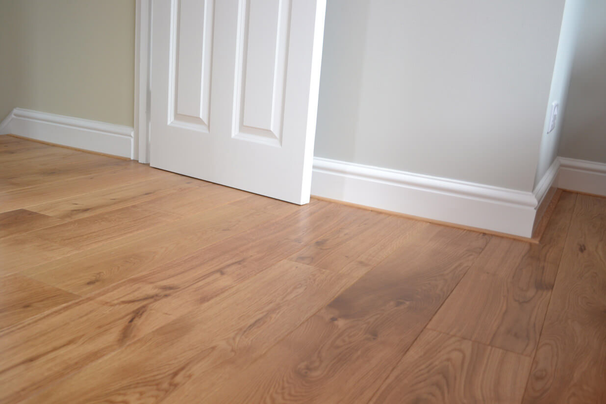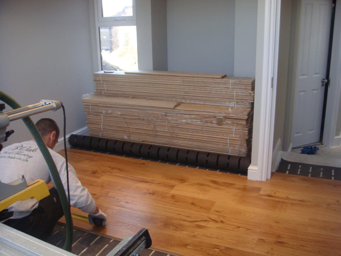 The oak floors in Richmond used for this project was our popular 20mm x 180mm wide engineered oak floor planks, the grading of the wood was a rustic A/B grade with standard lengths of 2.4m long being the average. The 21mm thickness consists of a 6mm top layer of oak and 15mm quality birch ply.