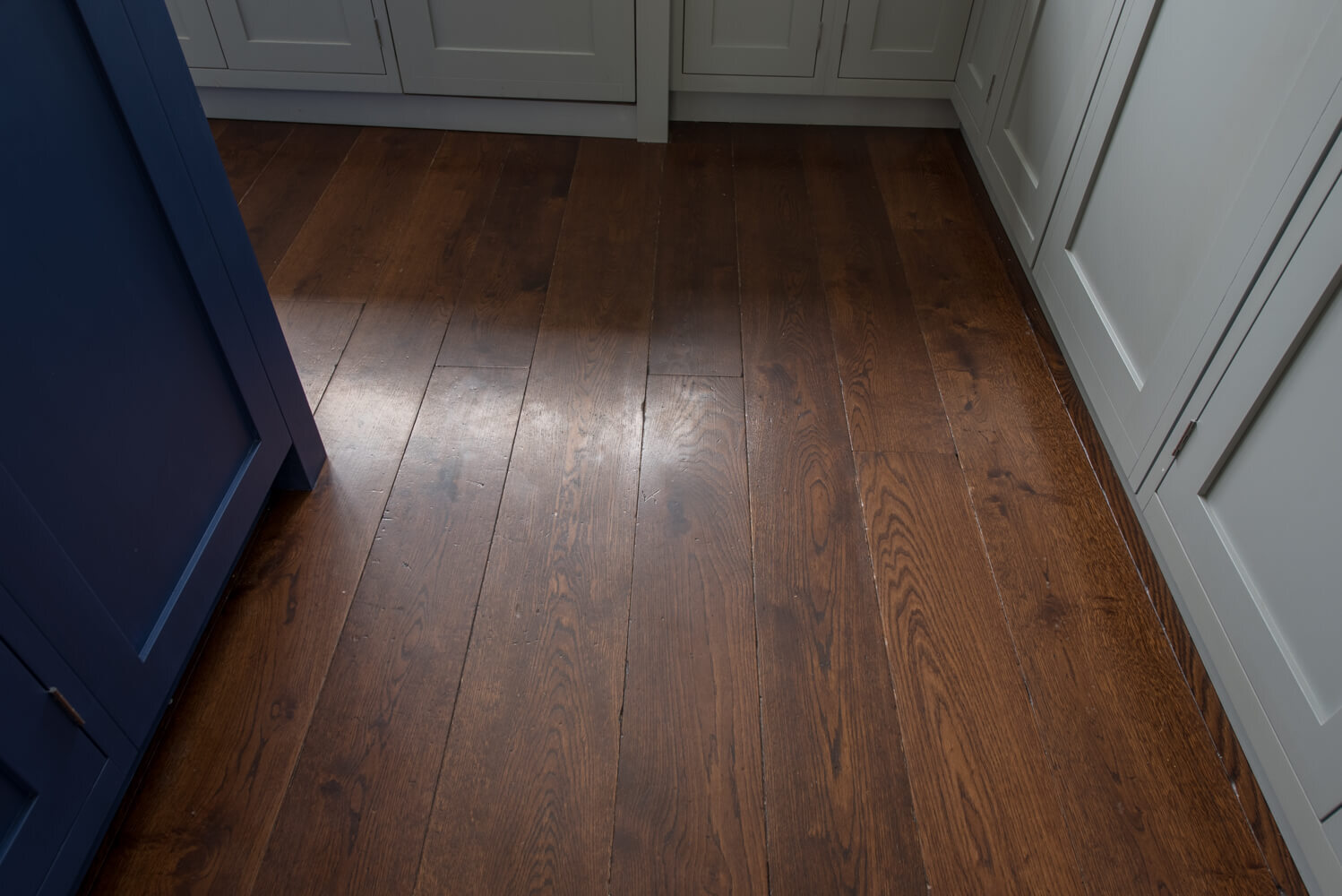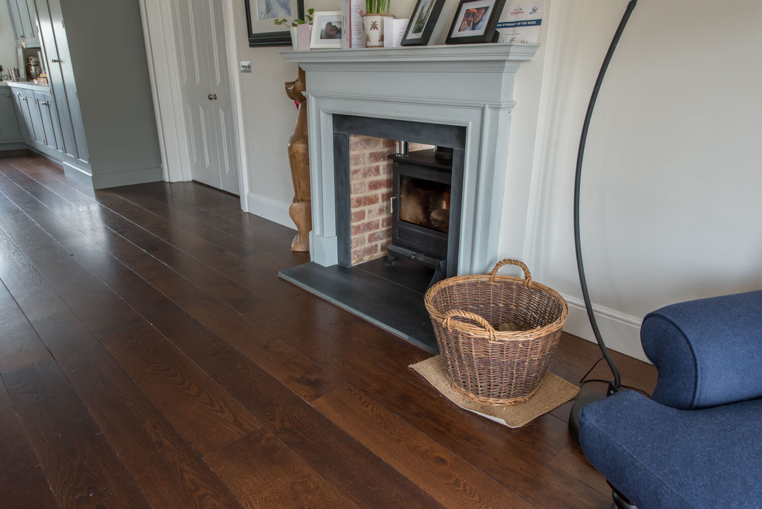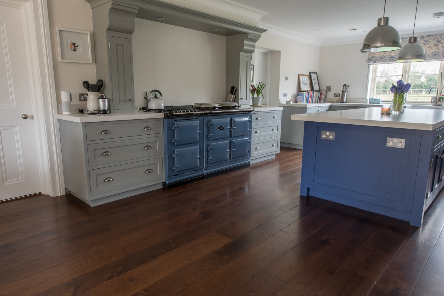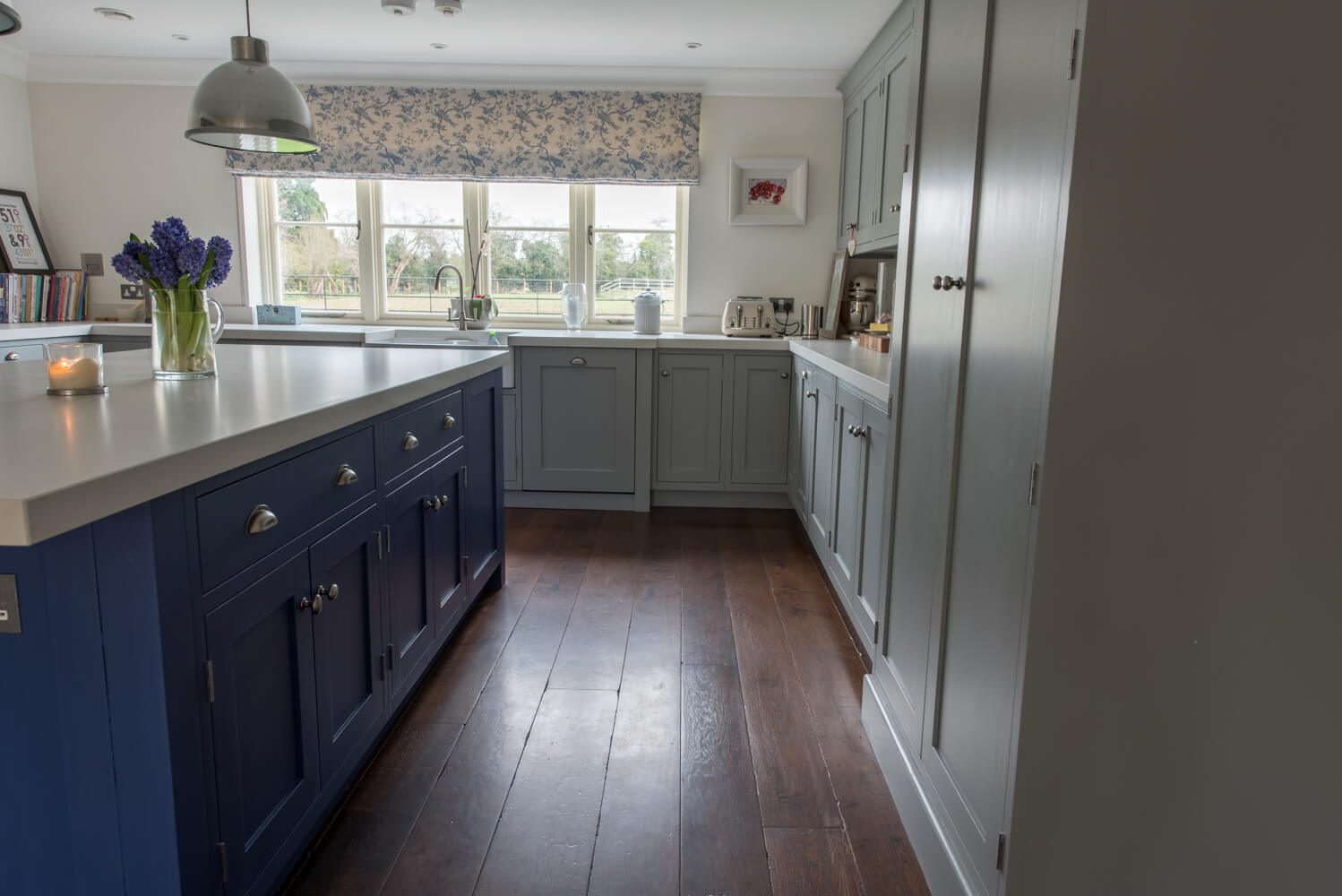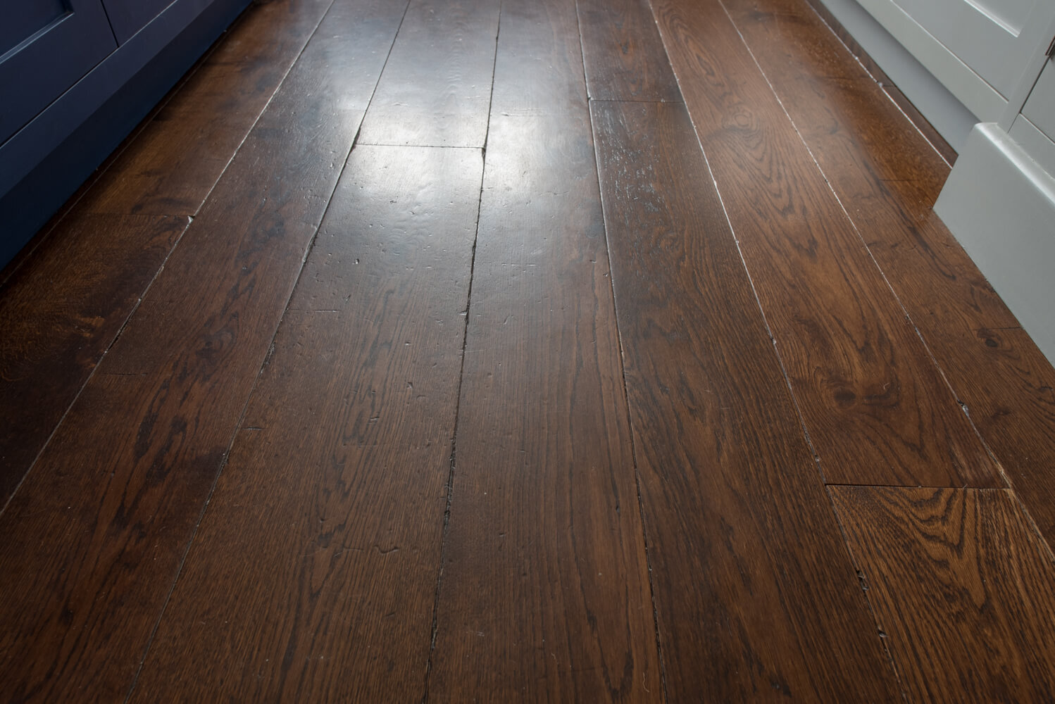 Idyllic Oxfordshire countryside home showcasing beautifully hand distressed planks in 180mm and 220mm wide random mixed widths, bringing character in abundance to this quaint country style Kitchen.