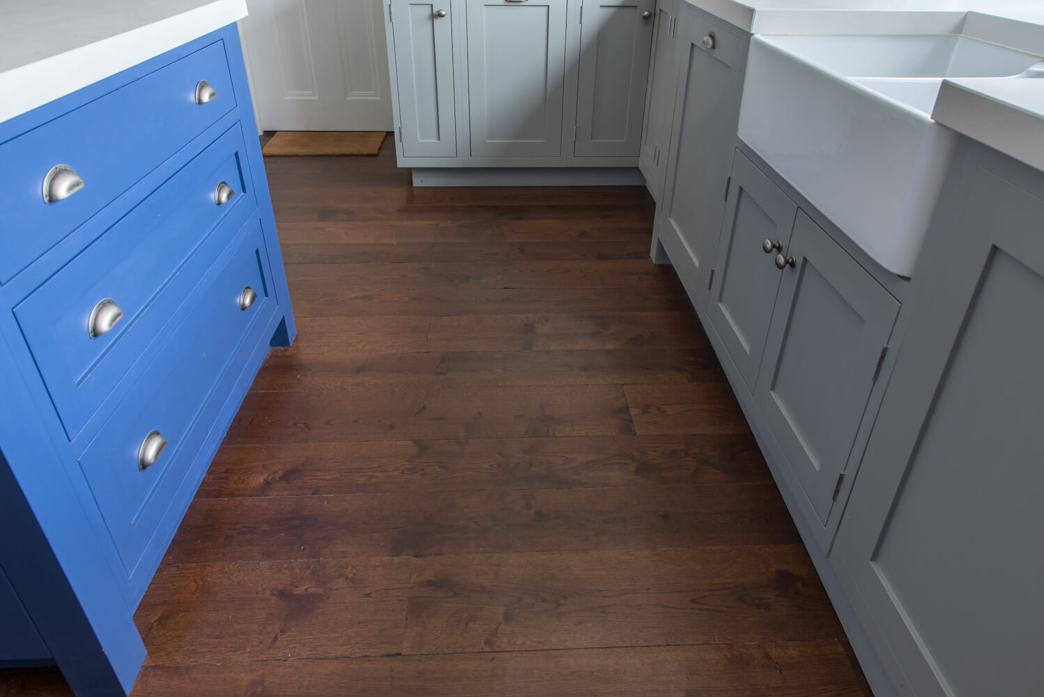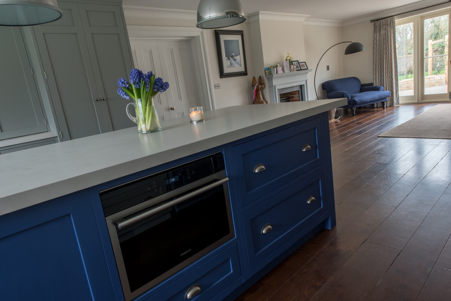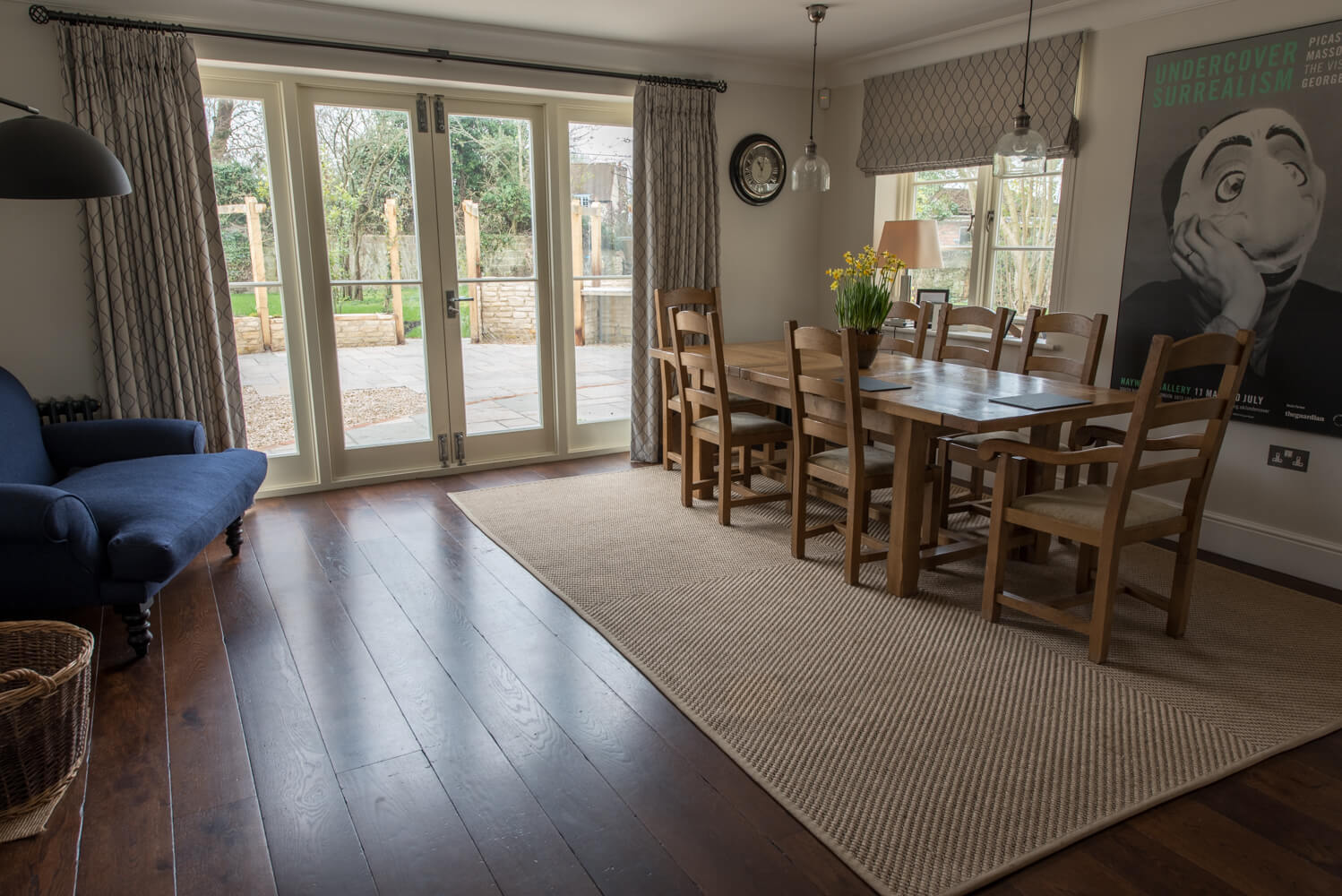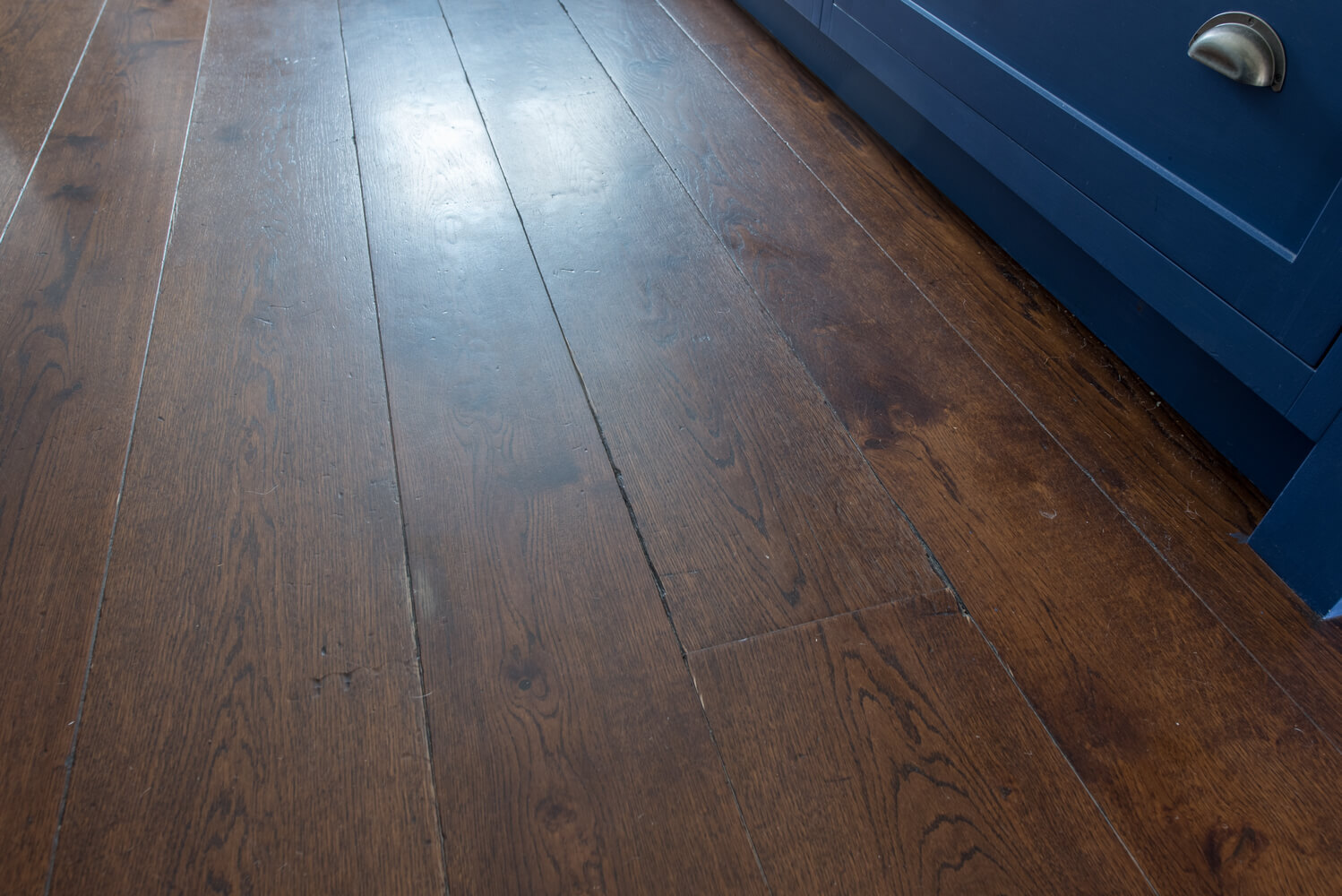 Idyllic Oxfordshire countryside home showcasing beautifully hand distressed planks in 180mm and 220mm wide random mixed widths, bringing character in abundance to this quaint country style Kitchen.