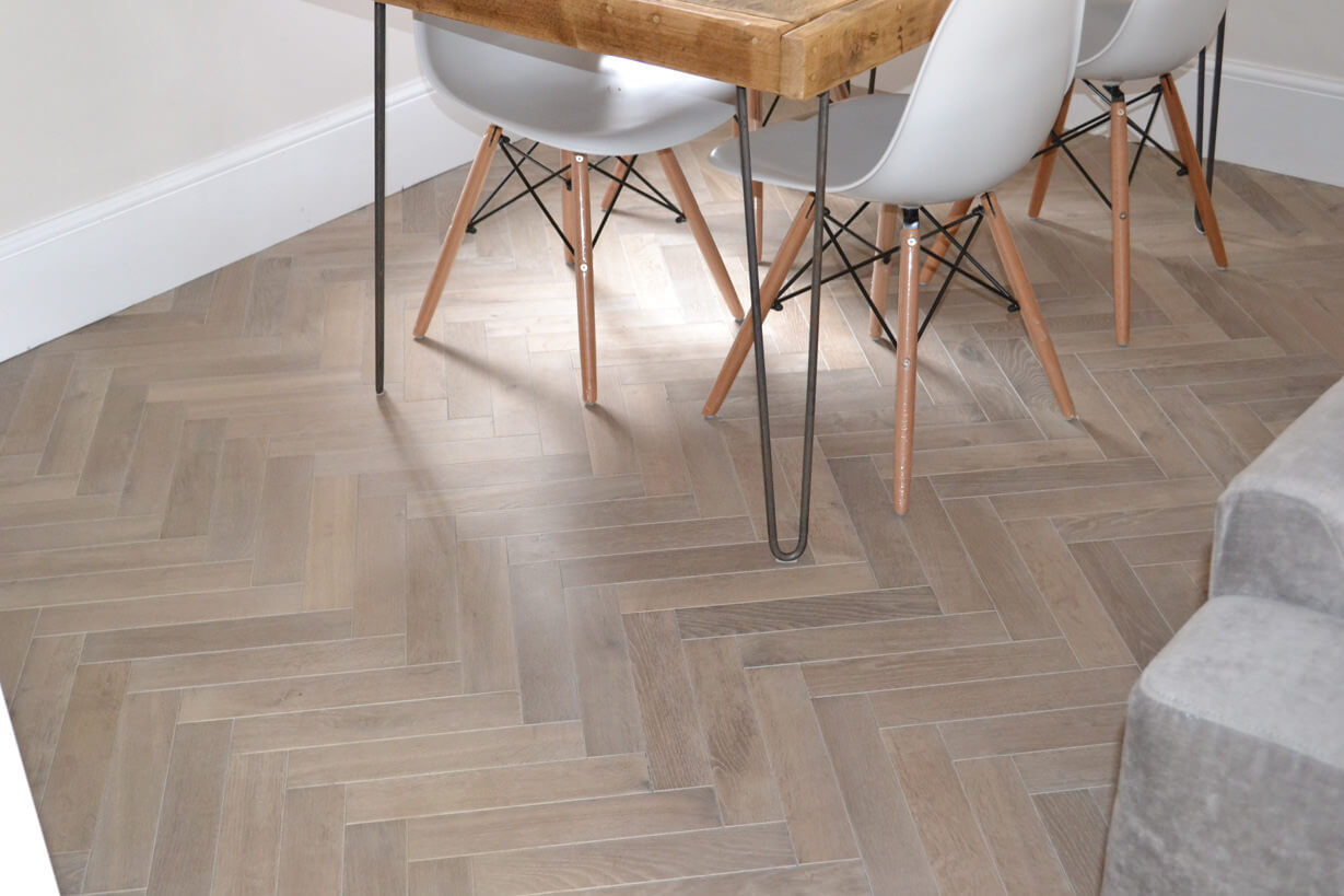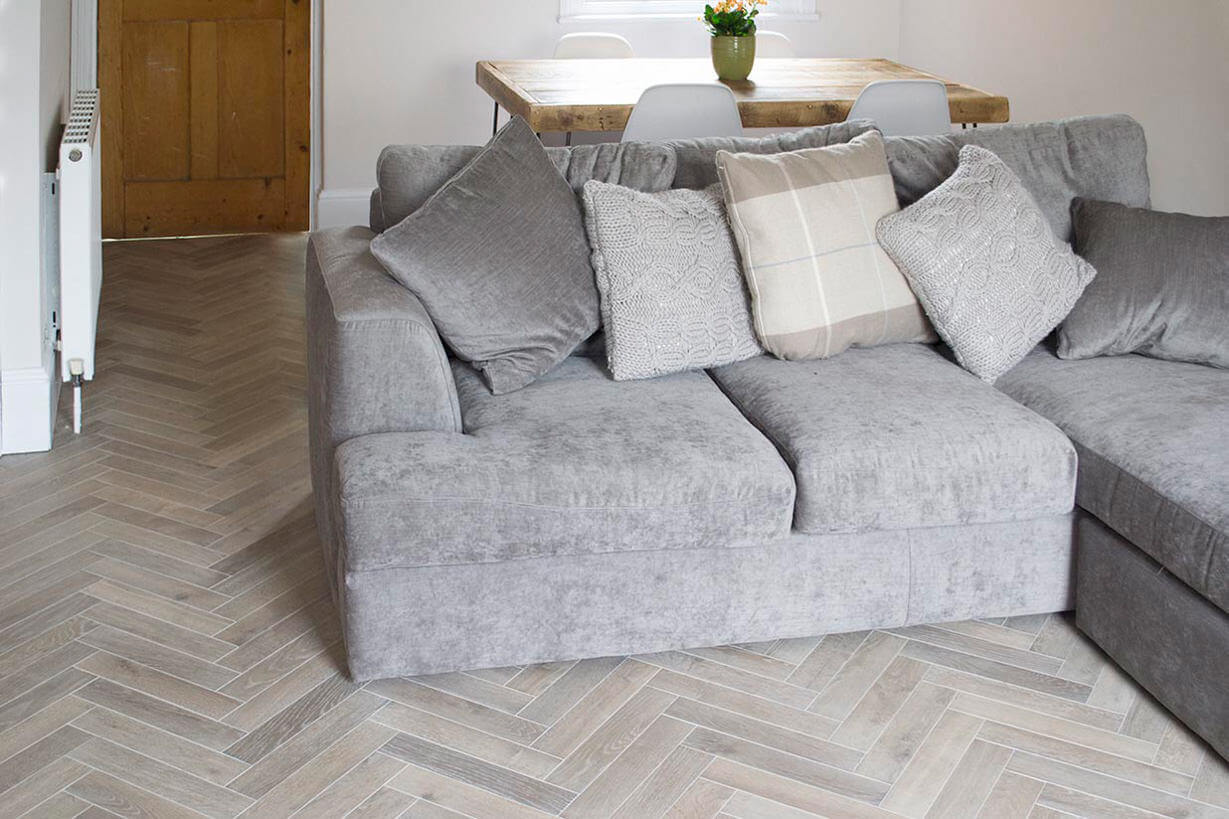 Using this type of Herringbone oak wood floor is very easy because of how it accentuates the rest of the appearance of the house. You can easily blend it with the overall color theme that you have in the house. In this case for example, the white walls and the furniture have a light colour blend that blends in perfectly with the floor.